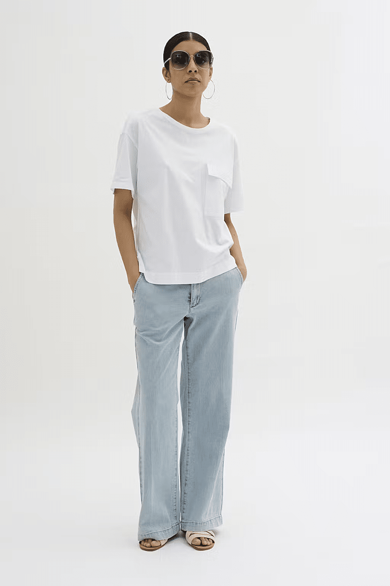 This wide-legged pant in an ultrasoft denim fabric by My Essential Wardrobe is made from 98% BCI cotton and 2% elastane for a super comfort stretch.
