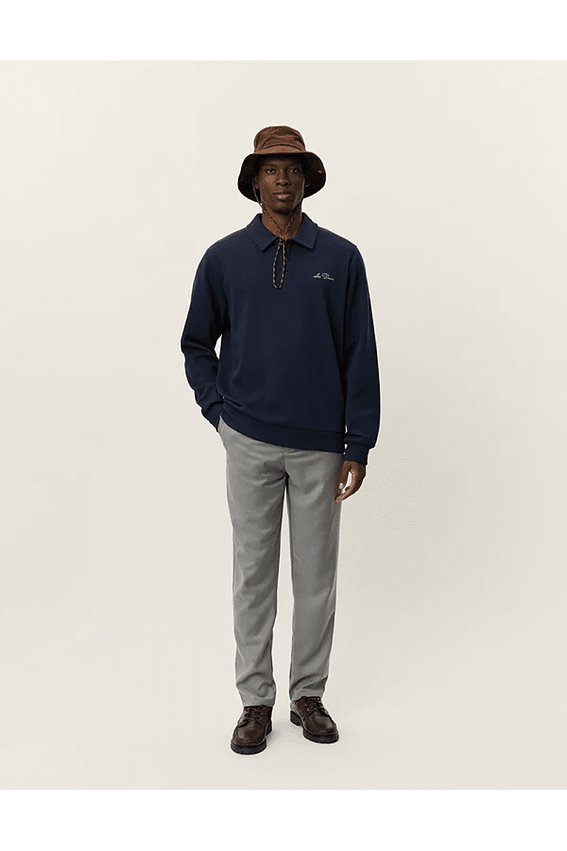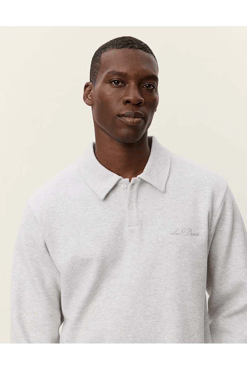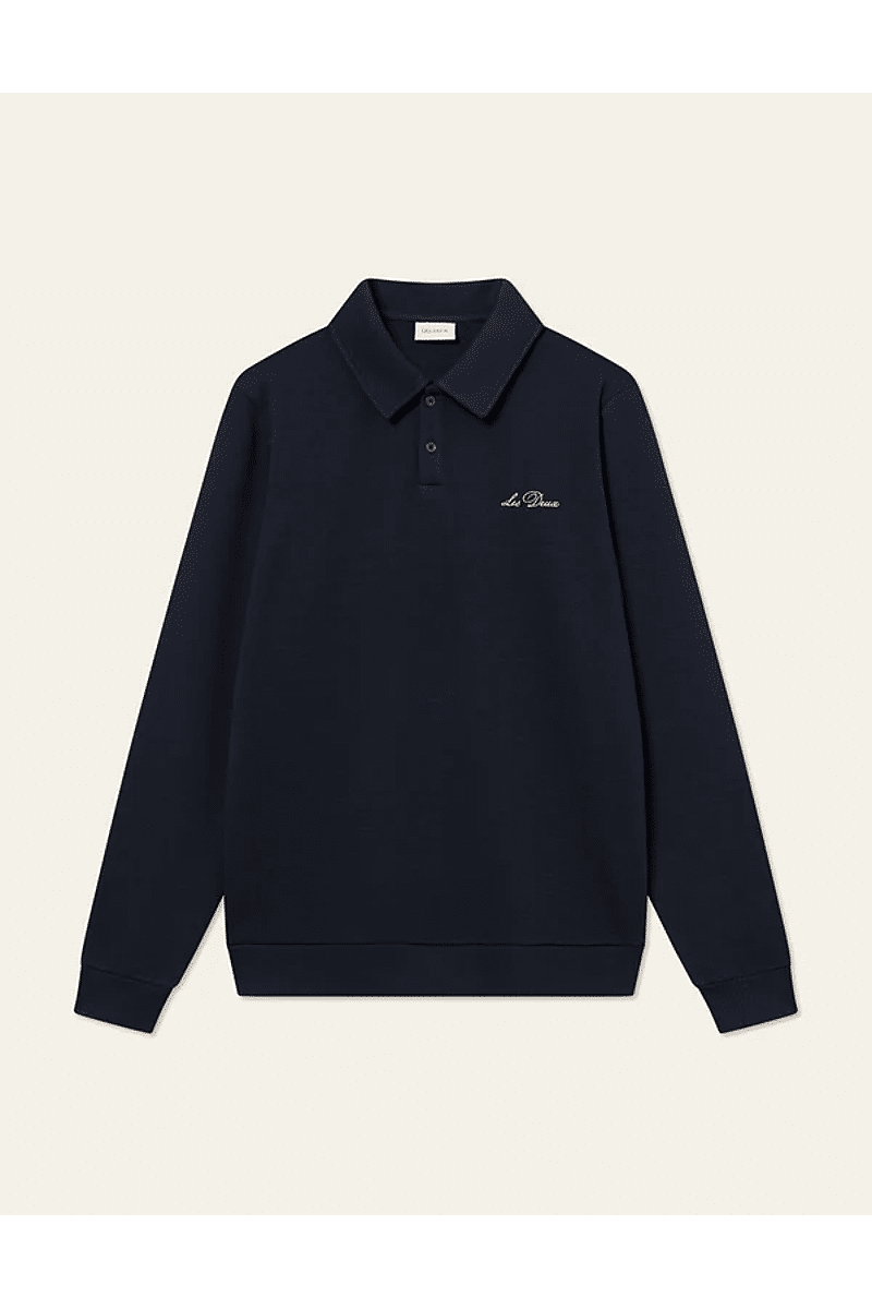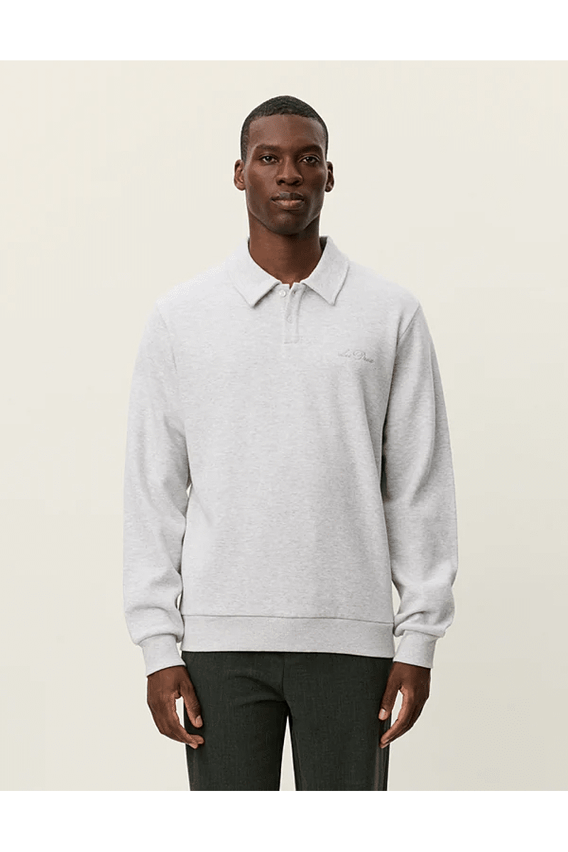 This casual sweatshirt with polo collar by Les Deux is made from piqué-structured French terry, it is lightly brushed inside and finished with a buttoned collar and chest embroidery.