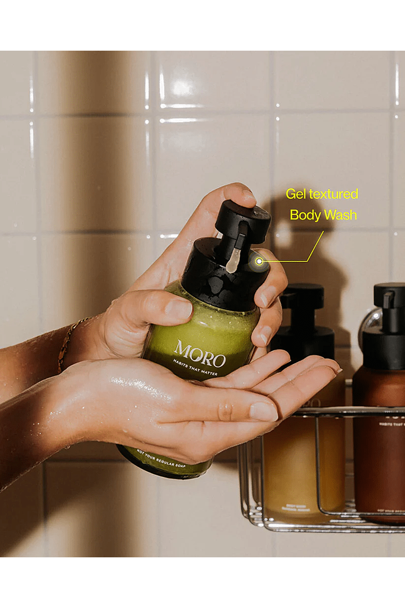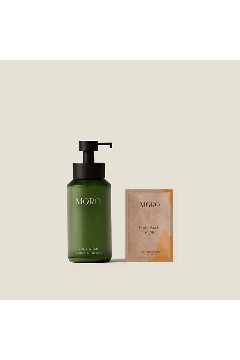 MORO's powder-to-gel Body Wash helps you easily avoid plastic waste. Just add tap water, shake, and you're ready to shower. Why ship 80% of the water when you already have a tap at home? This signature glass bottle is designed to be refilled again and again.