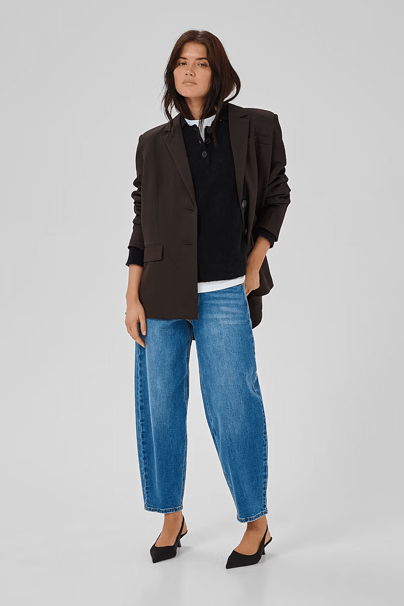 This women's blazer by My Essential Wardrobe features a relaxed fit and classic tailoring details, including a notched lapel and two-button front. Designed for comfort, it offers versatile styling for both professional and casual looks.