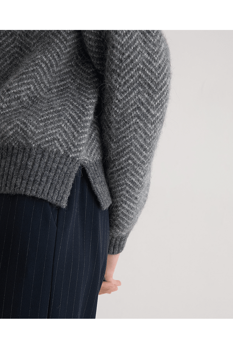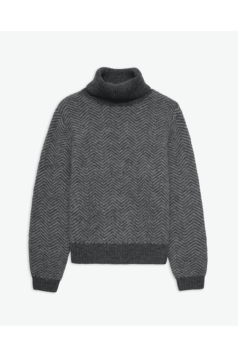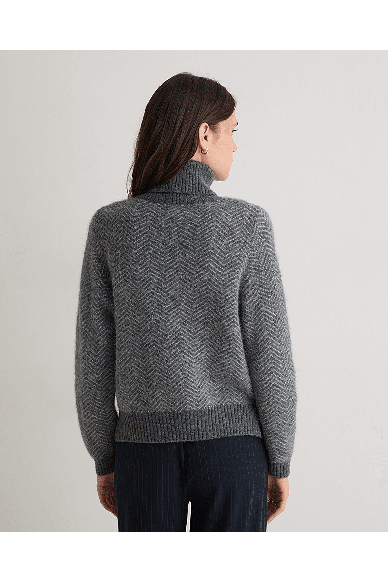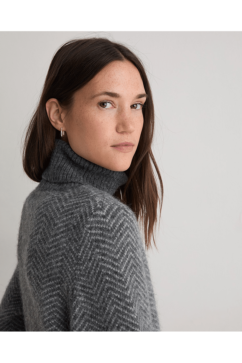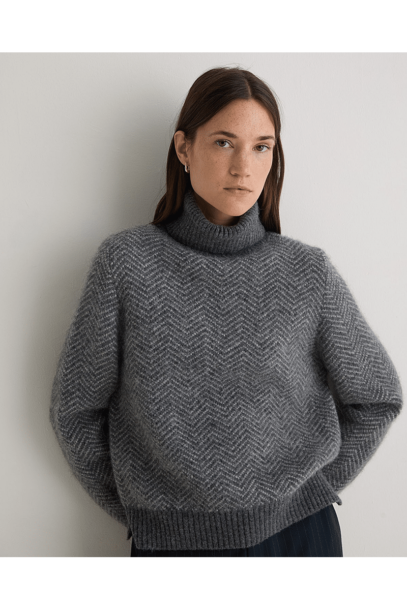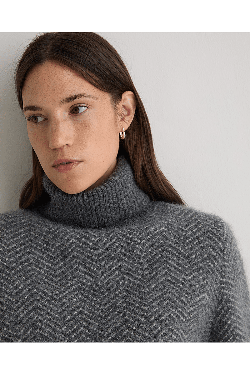This is a turtleneck sweater by Yerse. Wool blend. Herringbone design. Regular fit. Long sleeves. Contrasting ribbed accents. Side slits at the hem. / The model is 175 cm tall wearing size S.