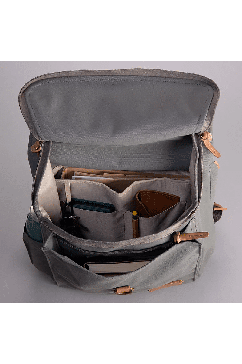 The Hunter Backpack from Property of... is a great everyday backpack with a classic look. It fits a 16" inch laptop and all the things you need during the day.