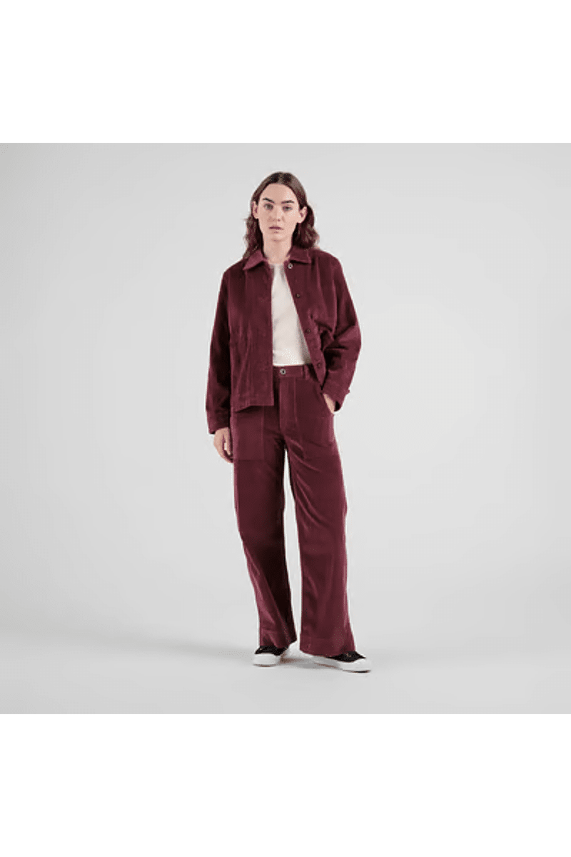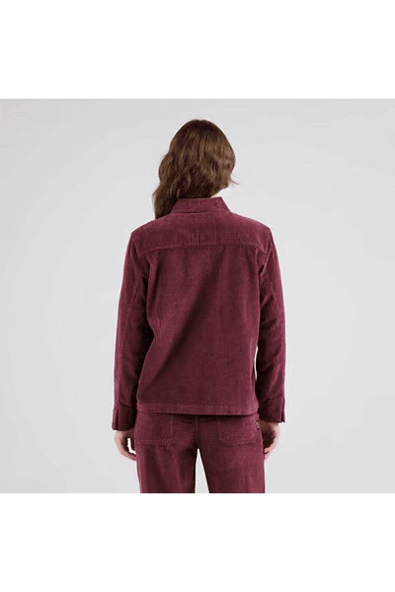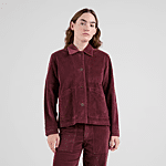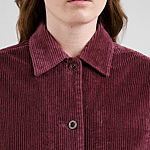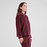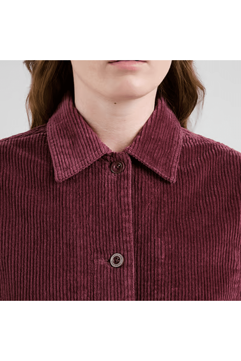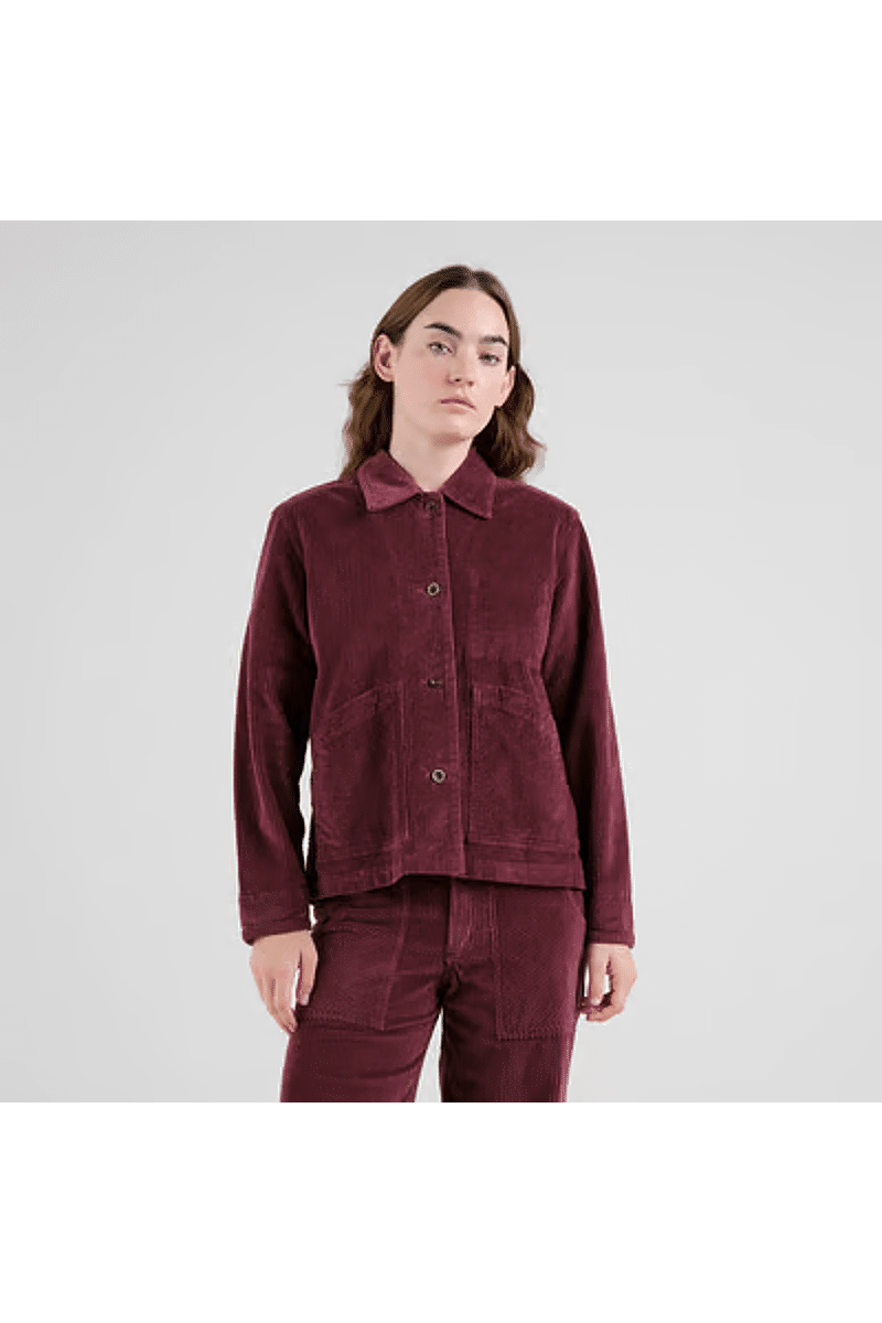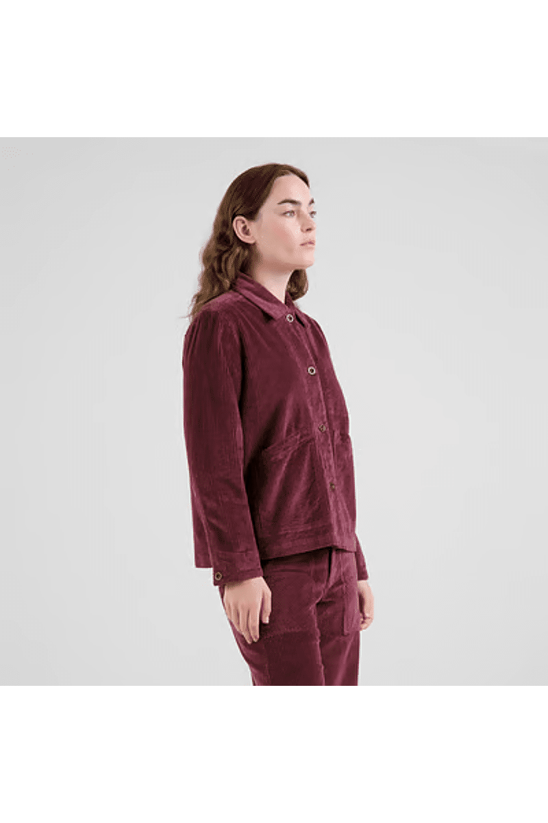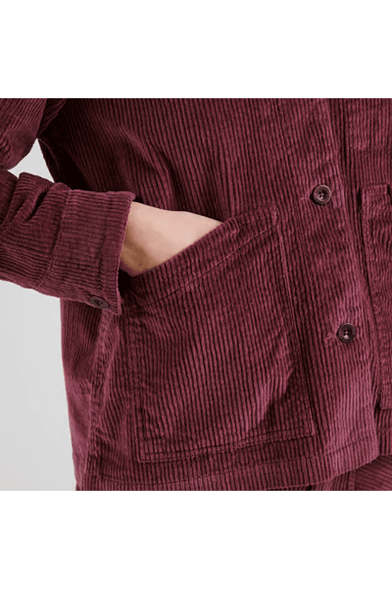 This is a long-sleeved shirt jacket with a relaxed fit by Dedicated. Angled front patched pockets and inside chest pocket with visible stitching on the outside. Button up closing and button on cuffs. Made in organic cotton corduroy.