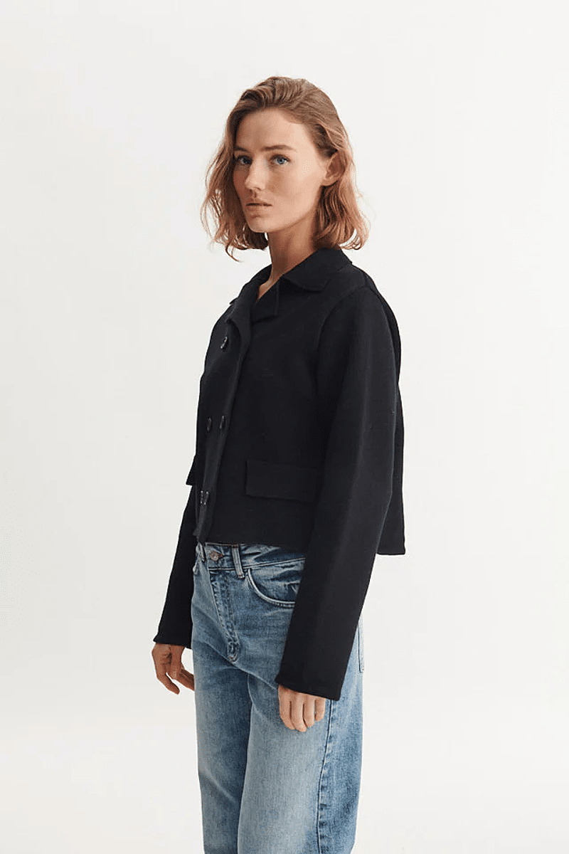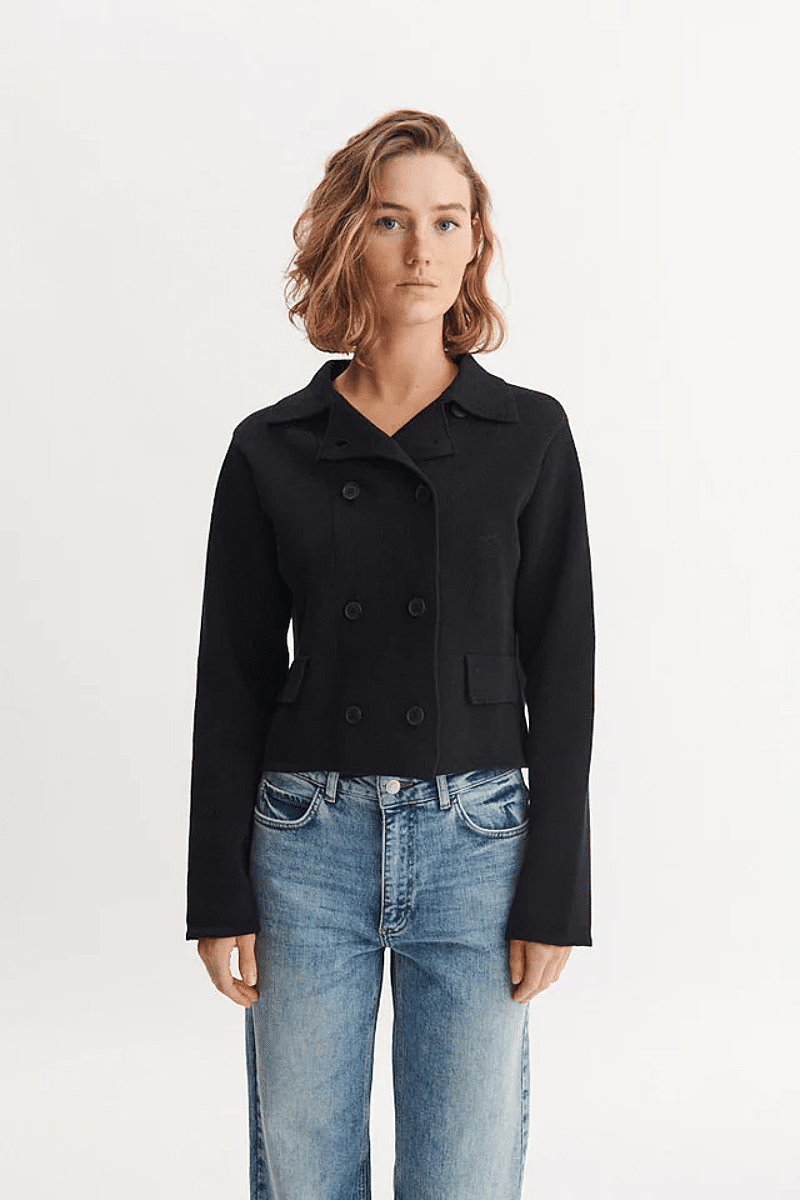 The Mima Jacket by Basic Apparel is an elegant, relaxed-fit jacket featuring a double-breasted front and long sleeves, offering both comfort and style. Its relaxed silhouette ensures all-day ease while maintaining a modern, effortless look. The practical front trick pockets add functional and stylish detailing to the design. The Mima Jacket is perfect for layering over dresses, blouses, or tops, making it suitable for both everyday wear and more formal occasions. Thoughtfully produced in Turkey, this jacket combines quality, comfort, and timeless design, making it a versatile and essential addition to any wardrobe.