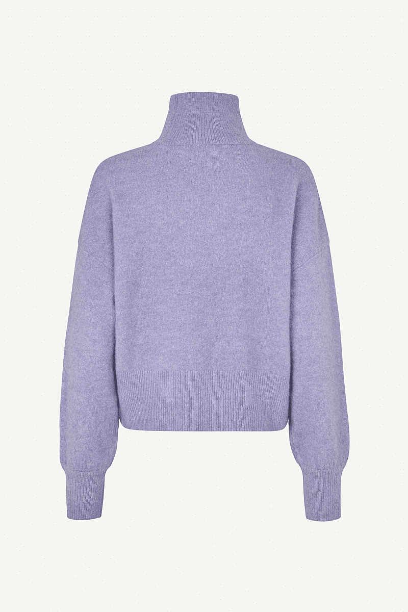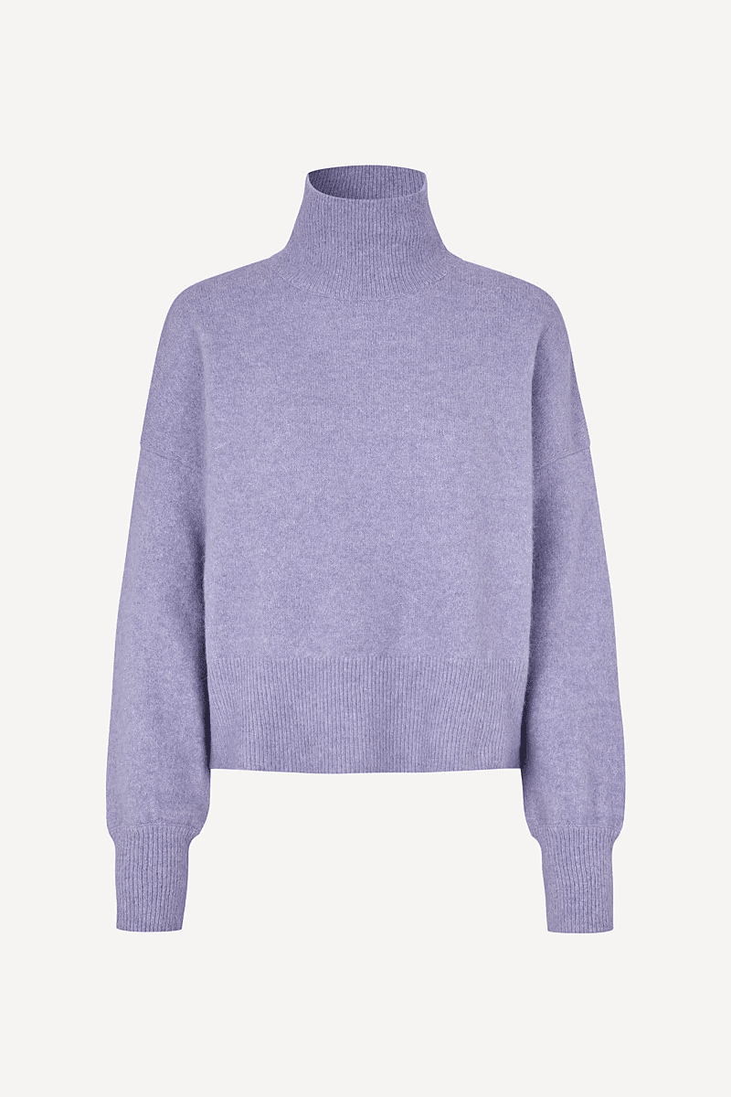 This knit by Samsoe Samsoe is Knitted in a combination of wool and alpaca fibers which creates a tonal melange effect this light and fluffy sweater. Ribbed trims give a slim and neat fit to the cuffs and turtle neck collar of this cosy and stylish knitted sweater.