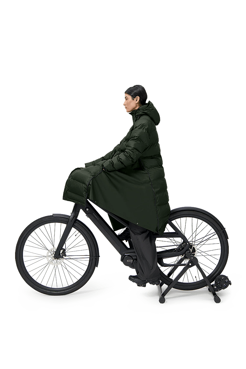 The oversized Puffer from Maium is a fully waterproof winter jacket. It easily converts into a poncho for cycling or scootering. Both the fabric and the filling are made from 99 recycled plastic bottles.