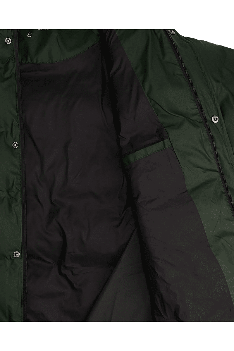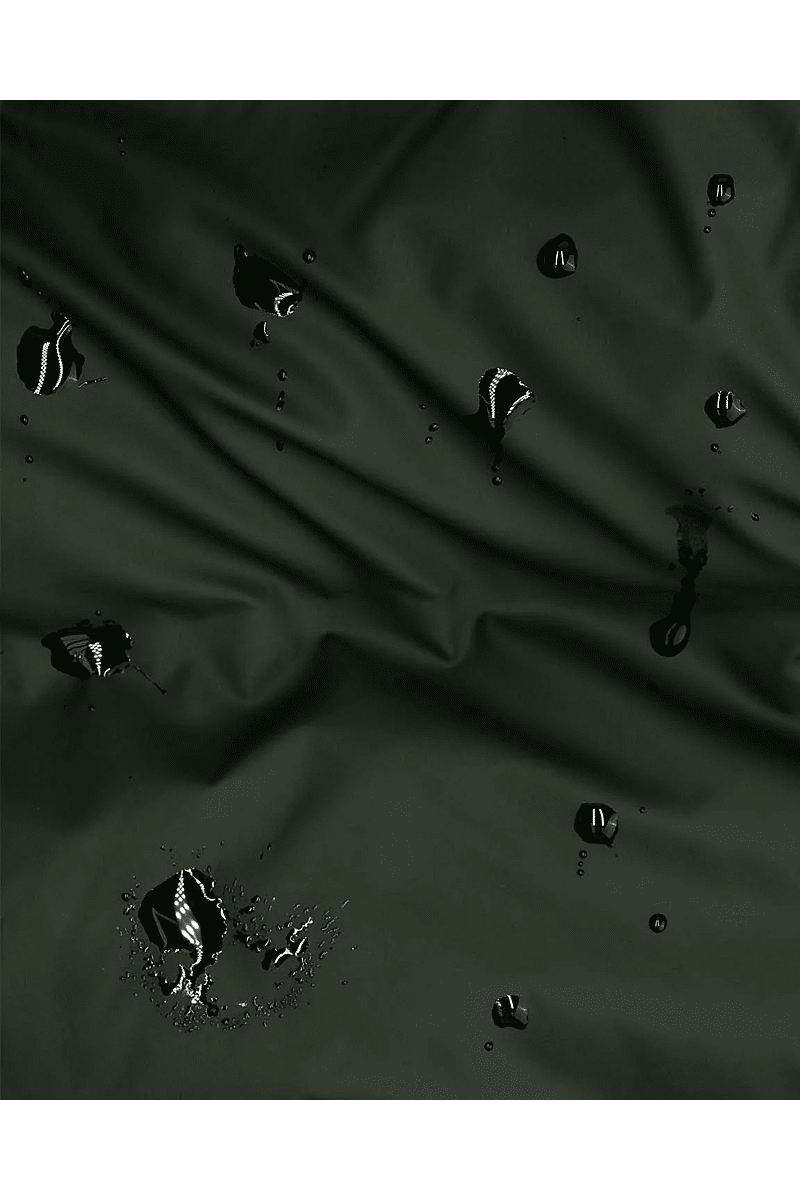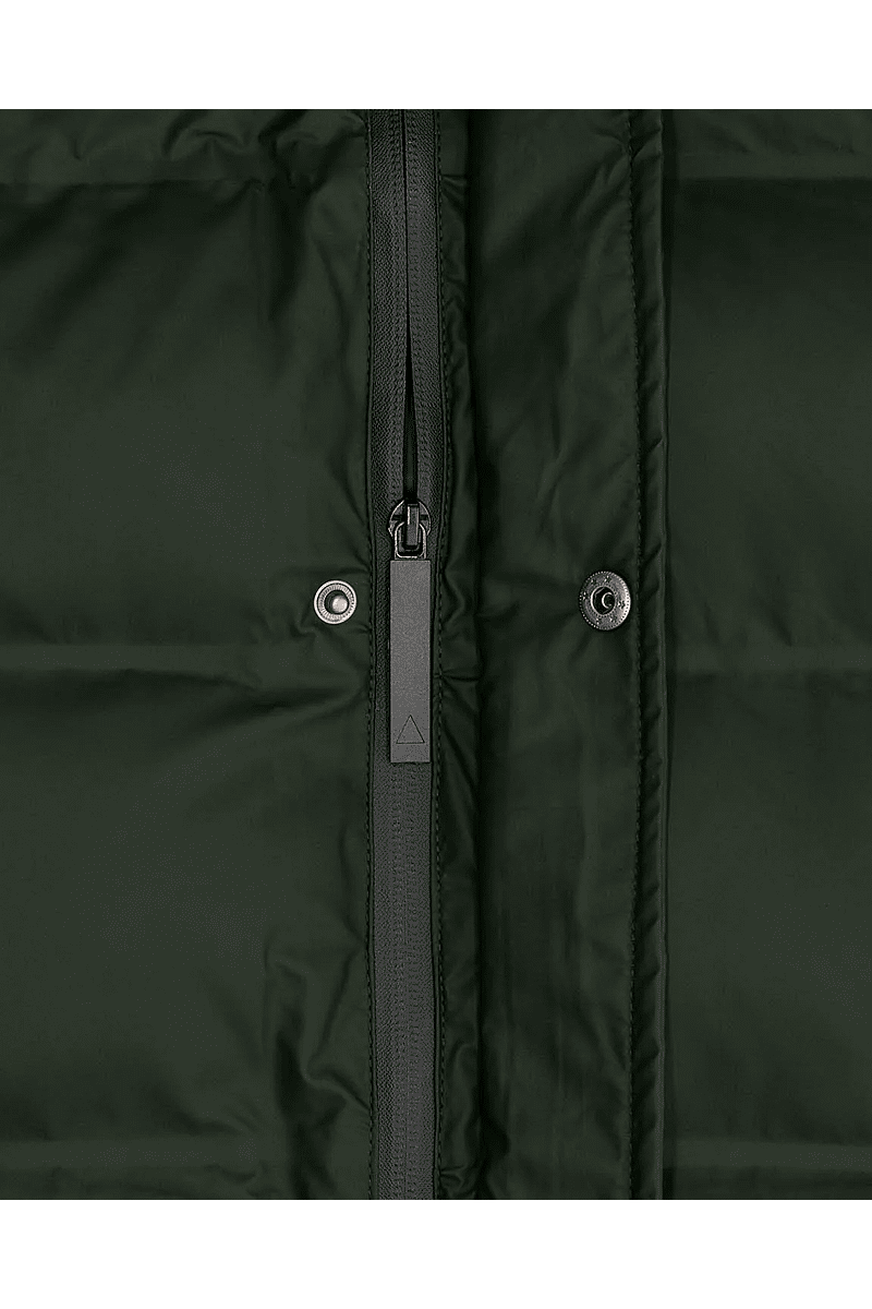- Two-way water-repellent front zipper with snap closure