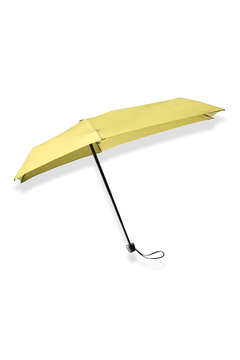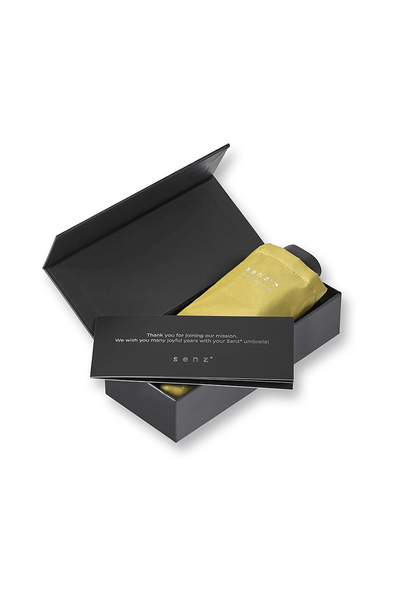The stylish and compact frame of this Senz° micro is made of very high-quality materials. The shaft is made of aluminum. Premium materials such as fiberglass and stainless steel are used for the ribs. This guarantees perfect performance in wind speeds of up to 70 km/h. The comfortable compact handle is equipped with a wrist strap. The premium, tightly woven fabric not only protects you from the rain, but also offers a protection factor of UPF50+. This means that more than 98% of UV rays are blocked. Great specifications for such a compact umbrella.