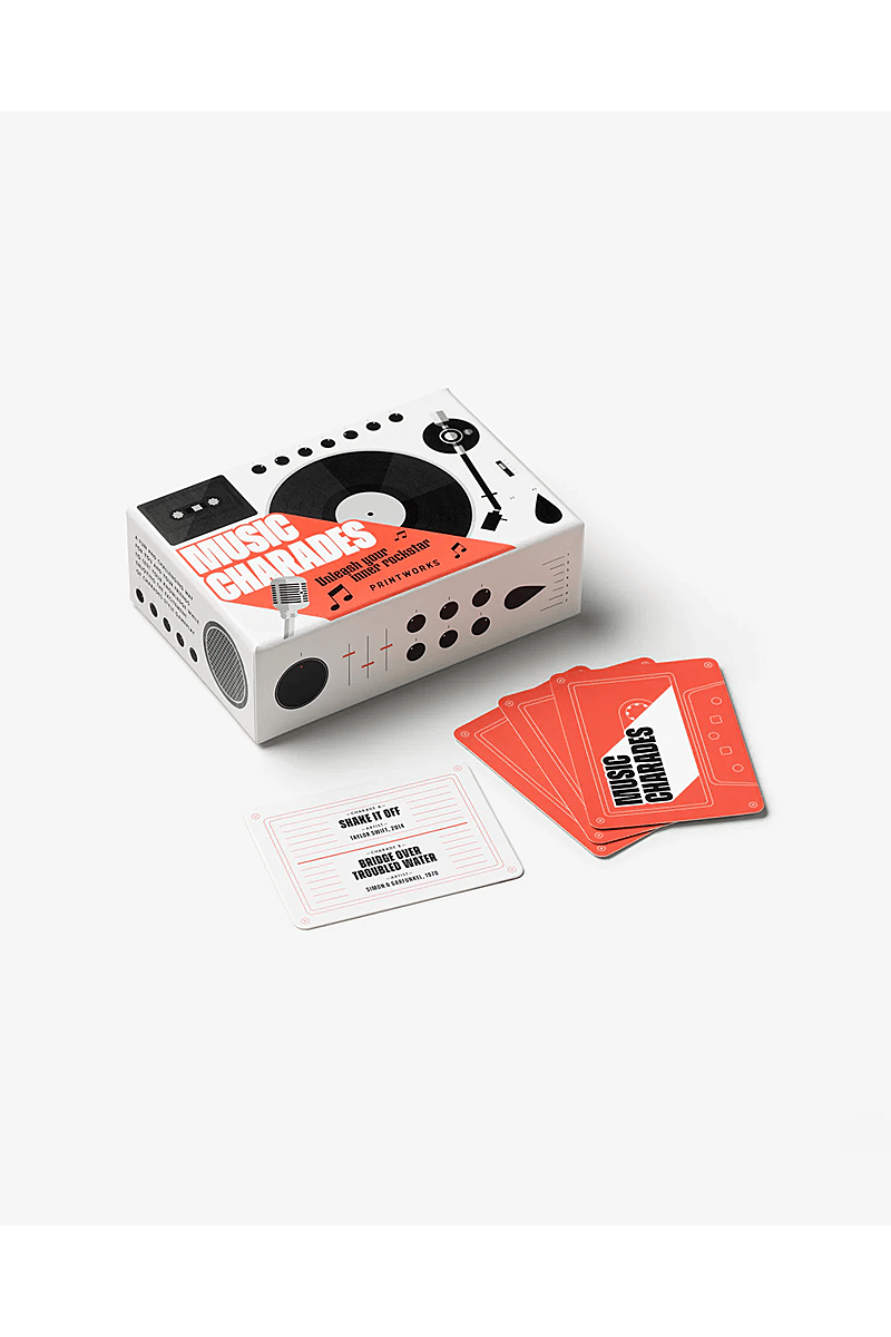 Test your musical knowledge with Music Charades by Printworks. Using beautifully illustrated cards made of 100% FSC-certified paper, players act out songs or artists, creating a fun and engaging challenge for everyone participating.