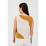 Dit is een gilet met ronde hals van Mus & Bombon met tweekleurige intarsia. Gedetailleerd met zijsplitten met ton-sur-ton knopen, waardoor een modern en uniek ontwerp voor je look ontstaat.