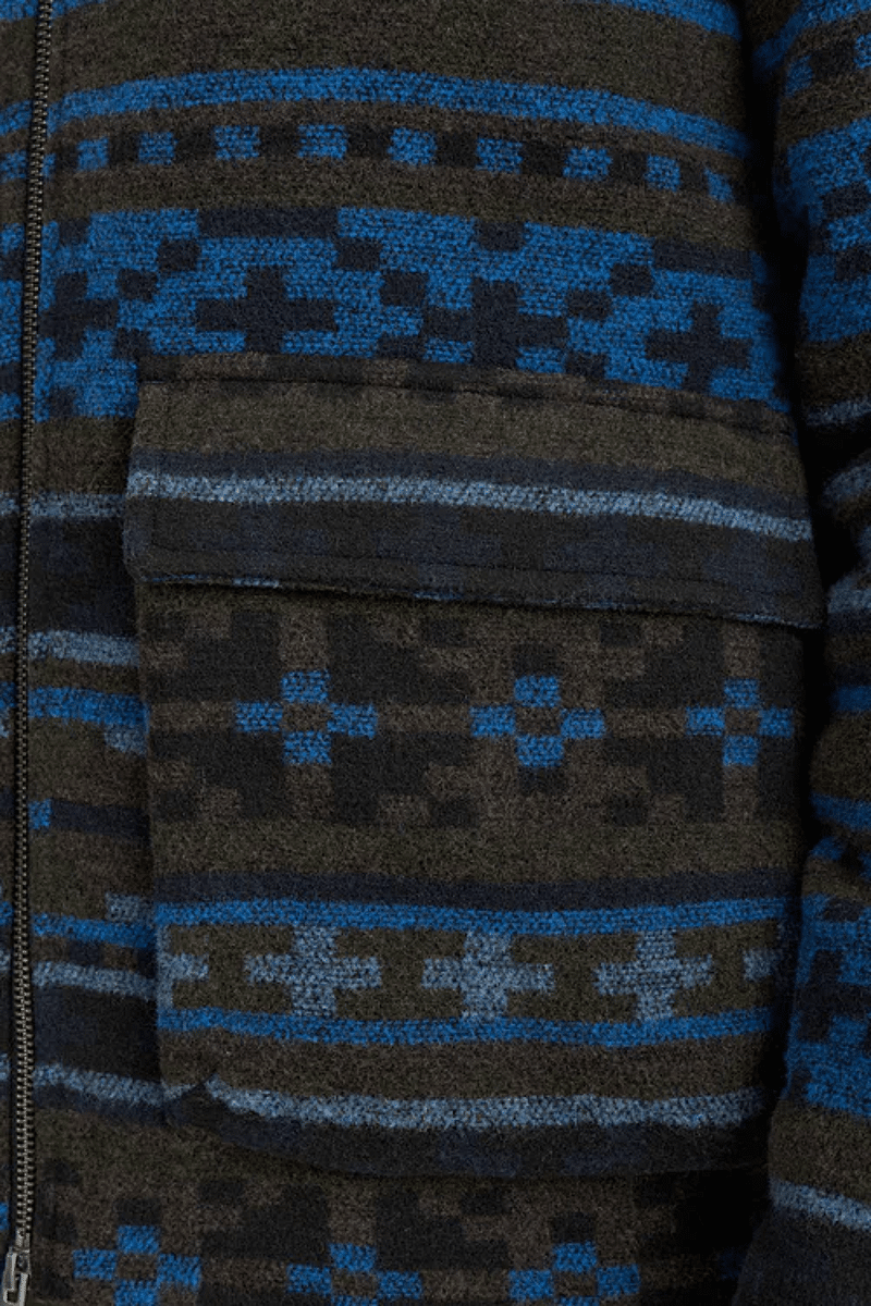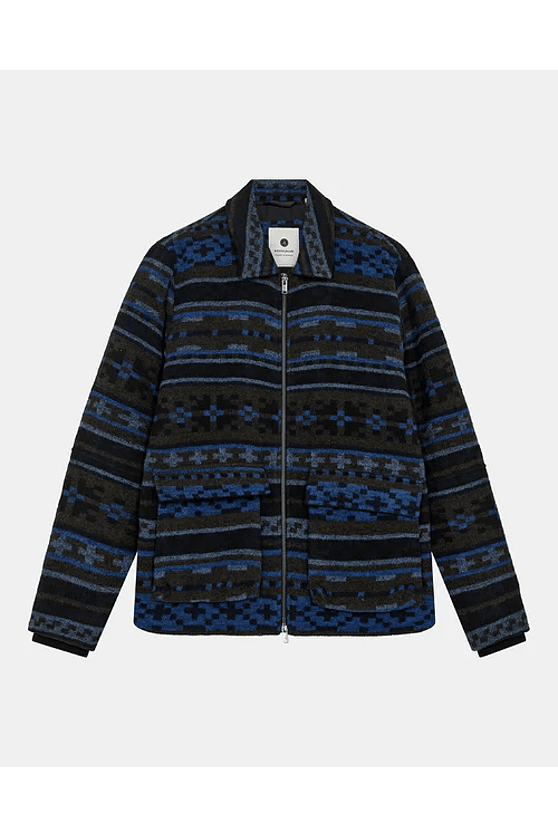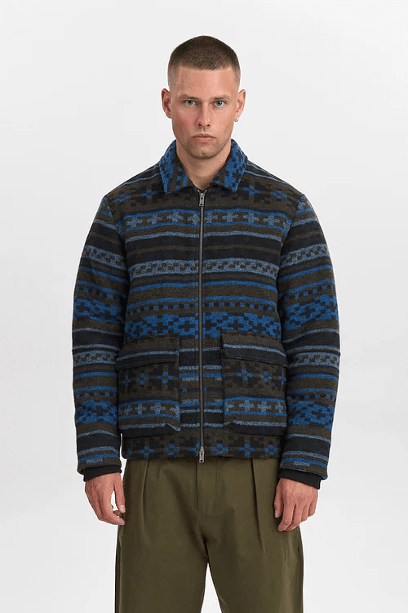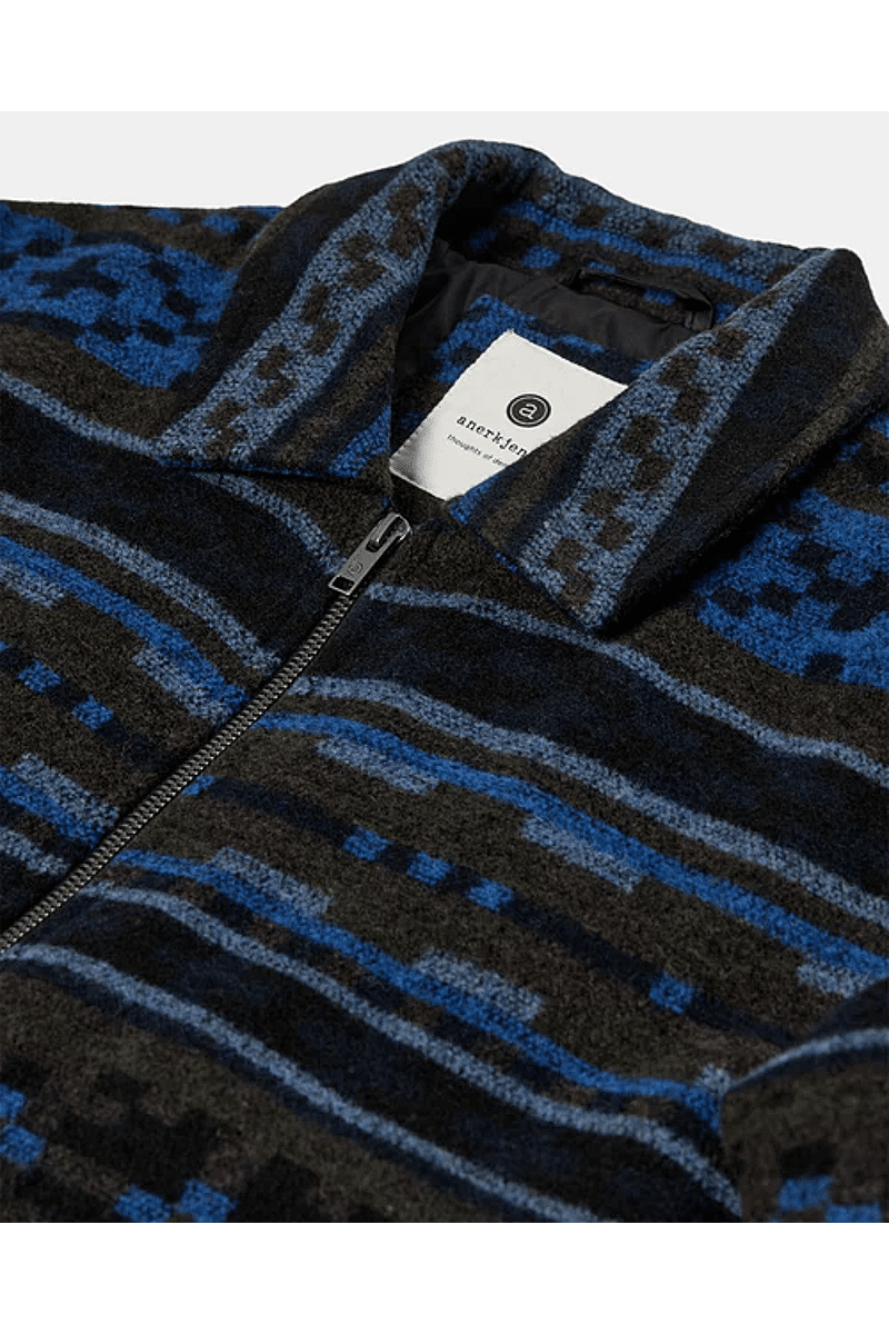 Deze wollen jas van Anerkjendt heeft een ritssluiting en grote opgestikte zakken.