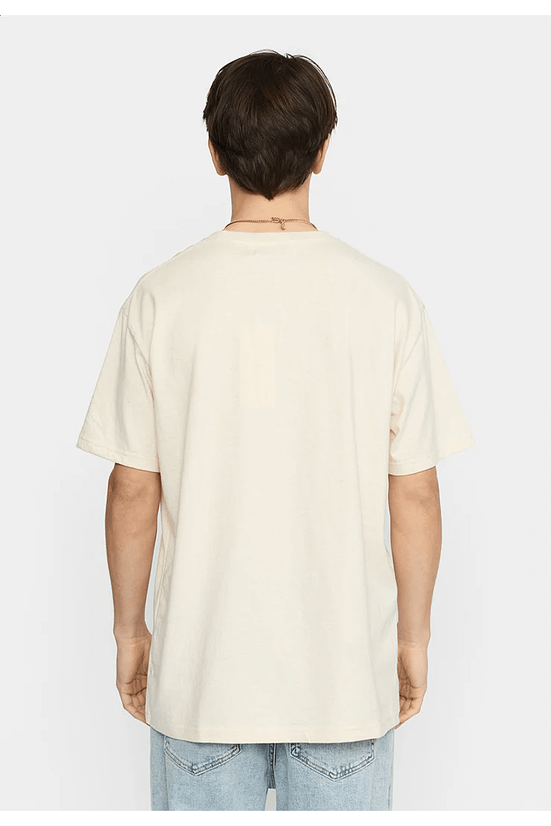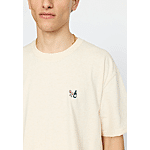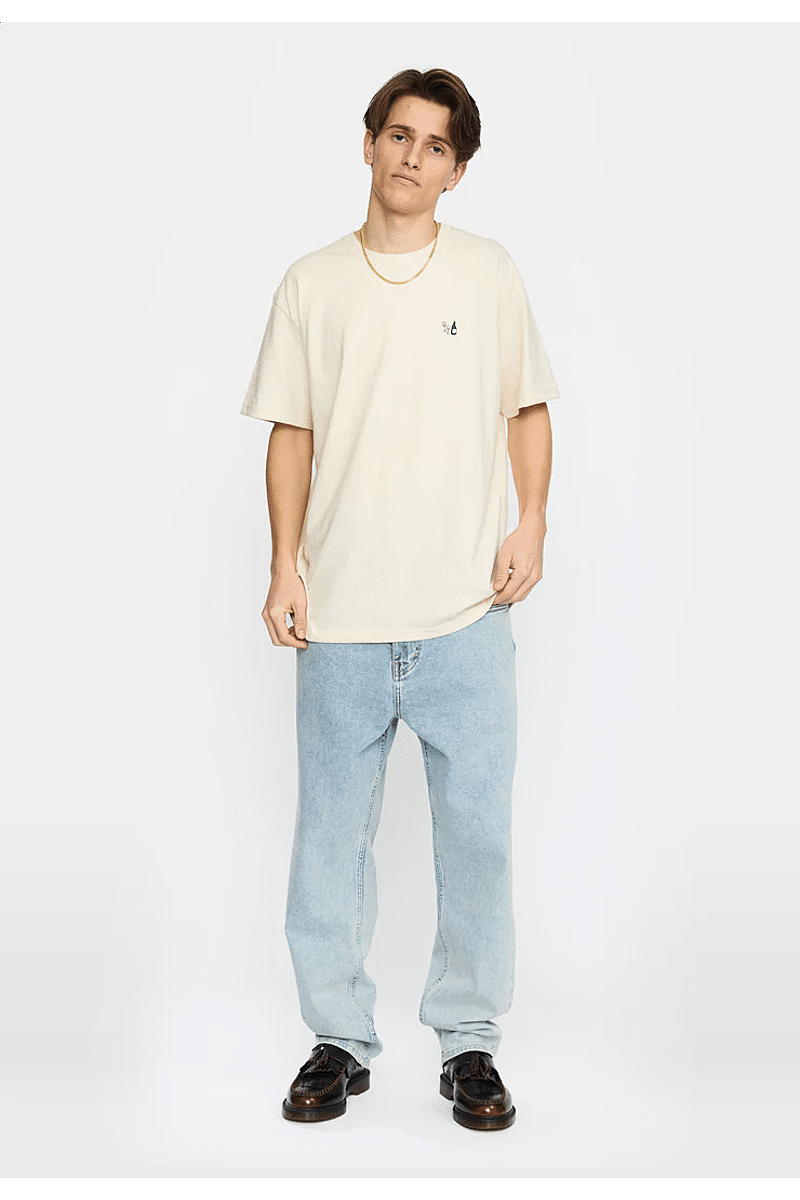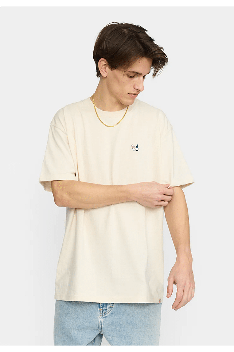 Dit is een losvallend t-shirt van Revolution met een ronde hals en korte mouwen, gemaakt van een gemêleerde jersey van biologisch katoen, met een gewicht van 200 GSM. Het t-shirt heeft een klein leuk, kleurrijk borduursel op de borst, een geribde kraag en de zoom is gemaakt met een tweelingnaaldsteek. De afwerking van het t-shirt voegt zachtheid toe en zorgt voor stabiliteit en duurzaamheid aan de stijl