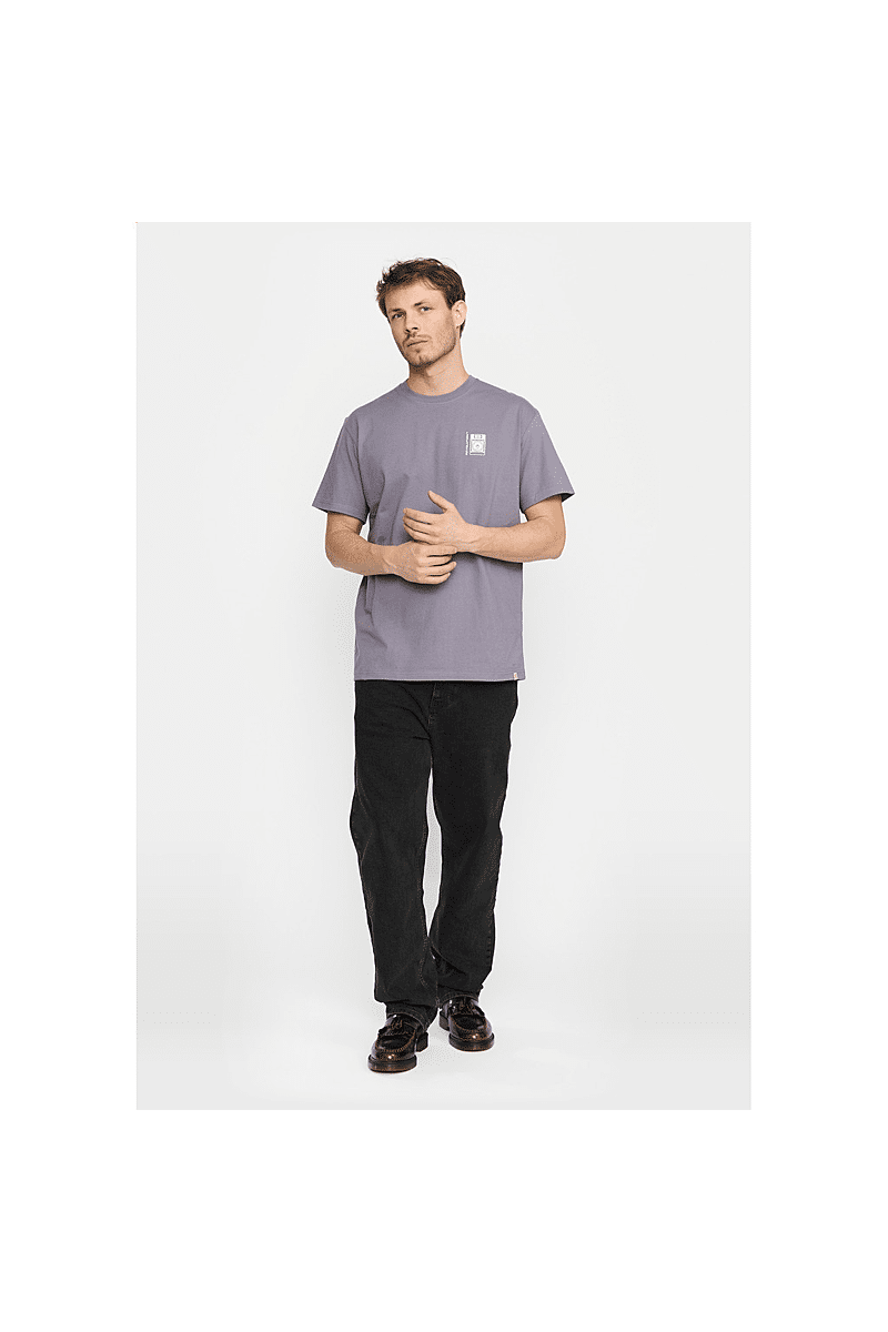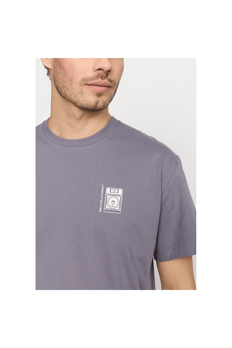 Dit is een losvallend t-shirt van Revolution met een ronde hals en korte mouwen, gemaakt van een jersey van biologisch katoen, met een gewicht van 220 GSM. Het t-shirt heeft een grote grafische print op de achterkant en een kleine print op de borst. De zware jerseystof die knapperig aanvoelt, zorgt voor stabiliteit en duurzaamheid van het T-shirt.