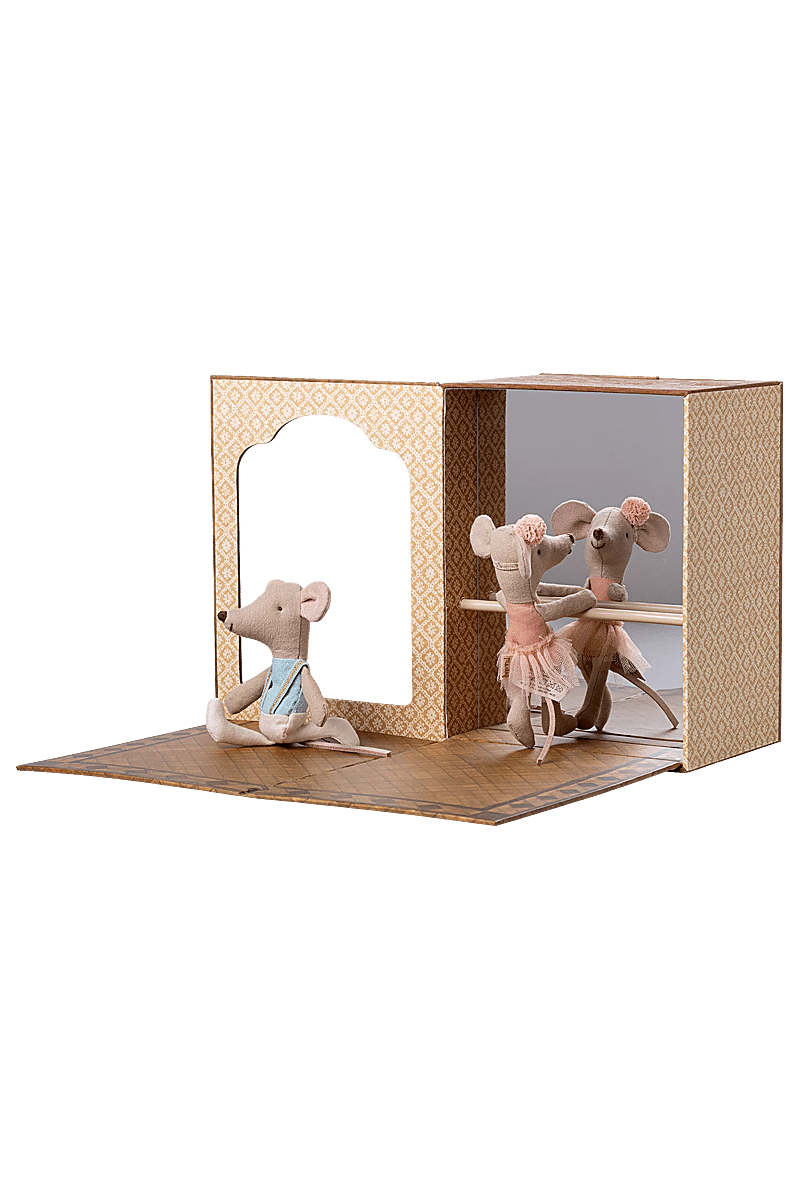 Open de deuren van deze magische doos en verken een wereld vol dans, sterrenstof en verhalen vertellen. Deze set bevat een papieren doos, die zowel een dansstudio als een gezellig muizenhuis is, en twee muizen gekleed voor urenlang dans in hun prachtige kleding.