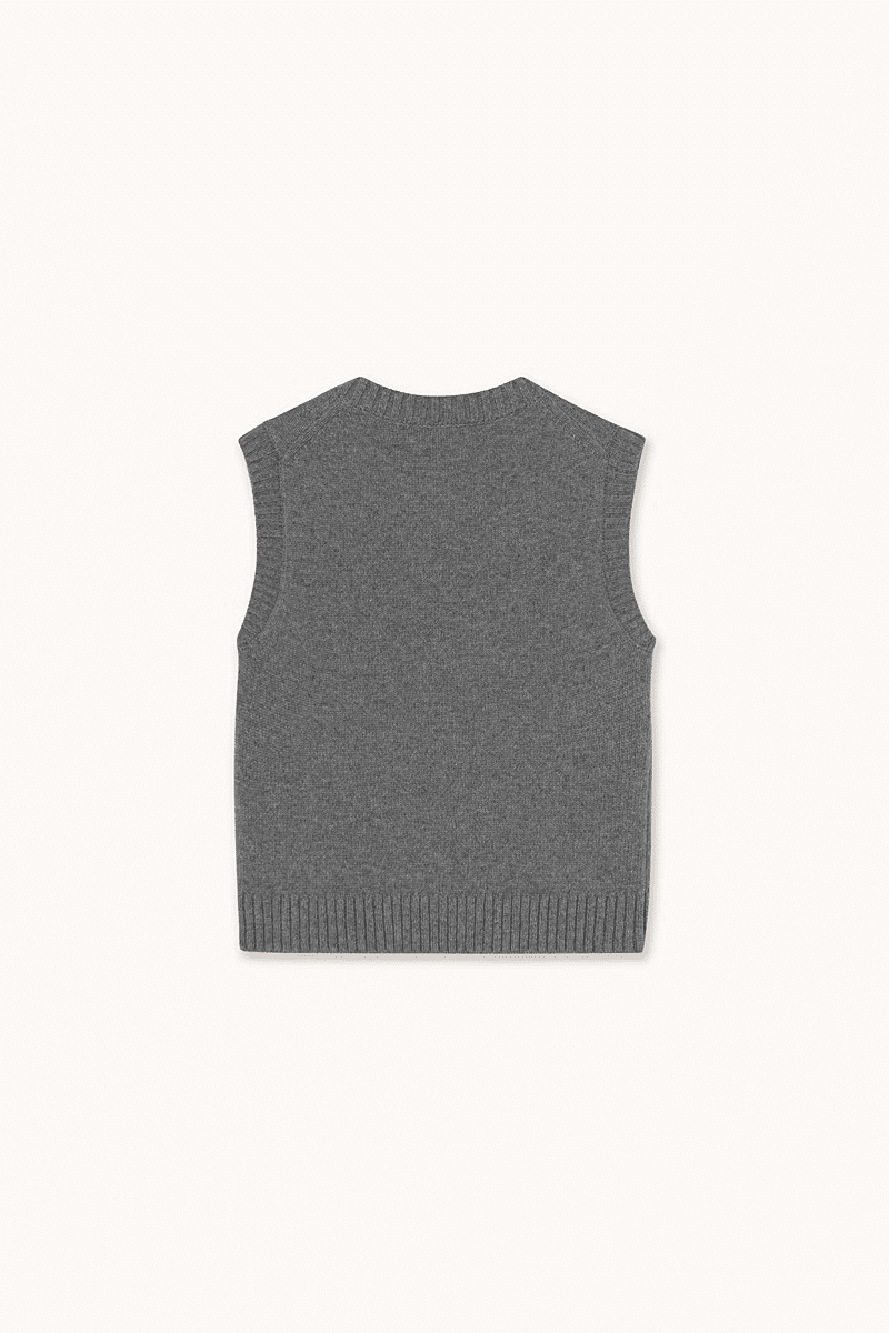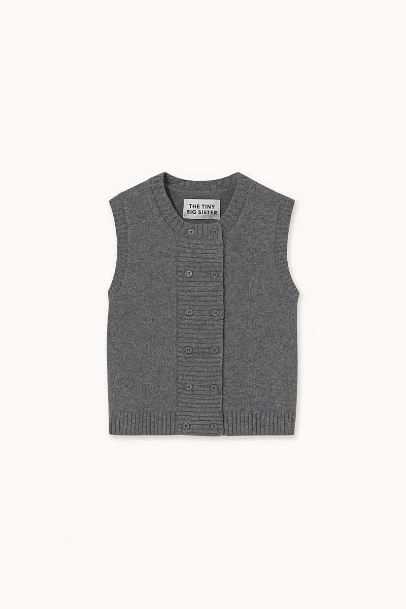 Dit wintervest van The Tiny Big Sister is gemaakt van warme merinowol in een grijs gemêleerde basis en is perfect voor seizoensgelaagdheid. Ontworpen met een ronde hals, knoopsluiting met dubbele rij knopen en een licht boxy silhouet voor een moderne, gestructureerde pasvorm.
