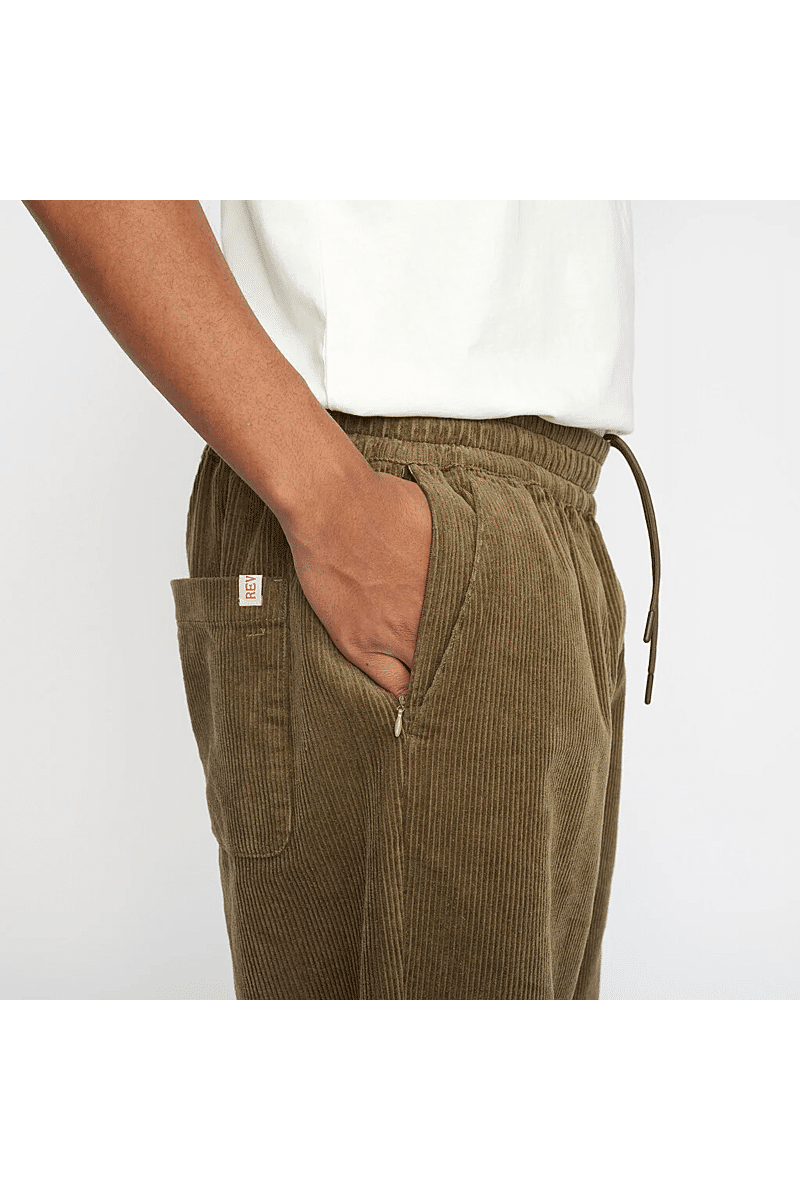Deze losvallende broek van Revolution is gemaakt van een katoenen corduroy stof. Heeft 3 zakken en een omgeslagen zoom