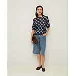 Deze denim bermudashort van Yerse heeft wijde pijpen en een mid-rise. Mix van lyocell en biologisch katoen. Knoop- en ritssluiting. Met vijf zakken.