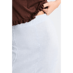 Dit is een midi-rok van Mus & Bombon met godets, volantzoom, onzichtbare ritssluiting en plat elastiek aan de achterkant voor extra comfort.