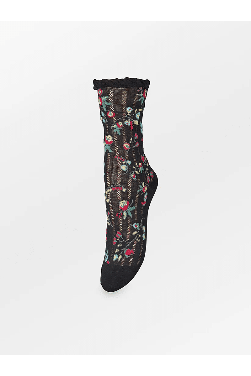 De Fairygard Cotta Sock van Becksöndergaard is een stijlvolle en comfortabele sok gemaakt van 62% katoen, 28% polyester, 8% polyamide en 1% elastaan. Deze sokken zijn voorzien van de Fairygard-print, een charmant, op bloemen geïnspireerd ontwerp dat een frisse en chique toets aan je look geeft.