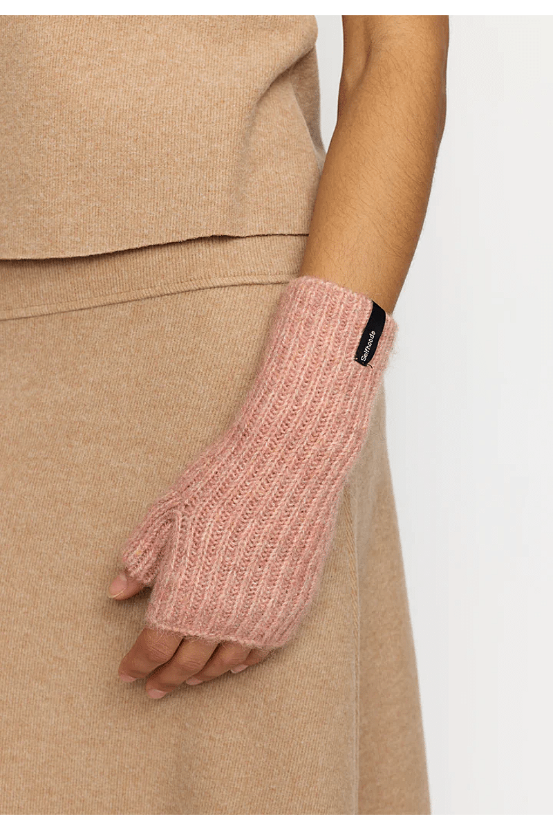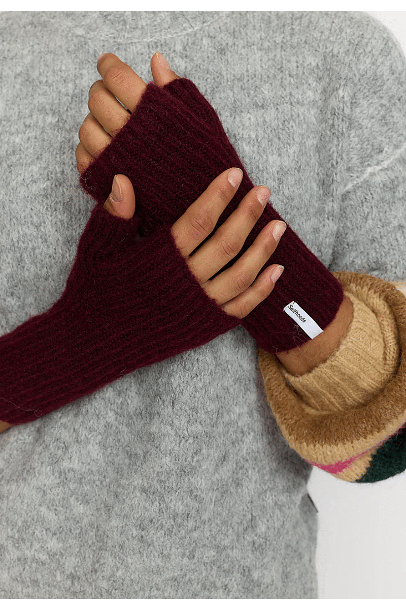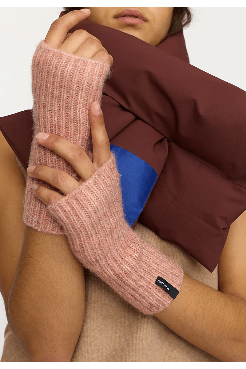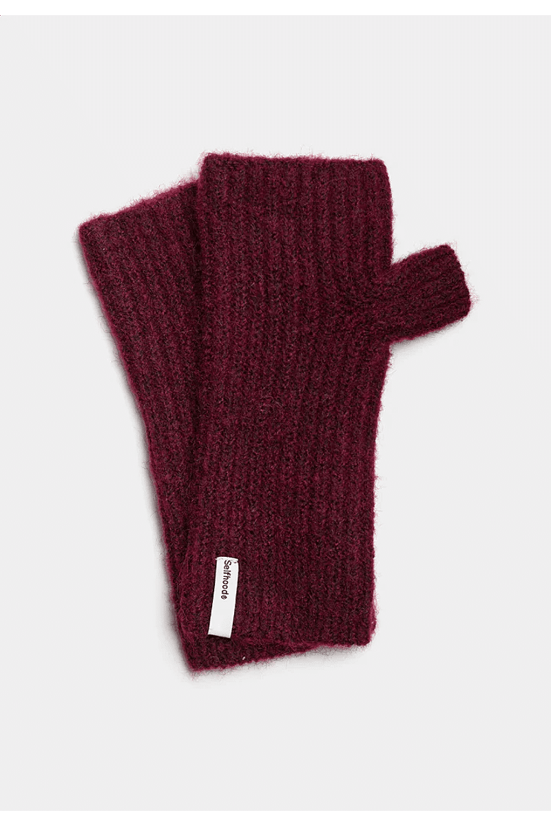 Deze warme gebreide halve wanten van Selfhood zijn gemaakt van een zacht, pluizig gerecycled polyester-wol-mix garen. De wanten zijn discreet versierd met een Selfhood merklabel en je vindt de wanten in veel mooie kleuren die bij elke outfit passen