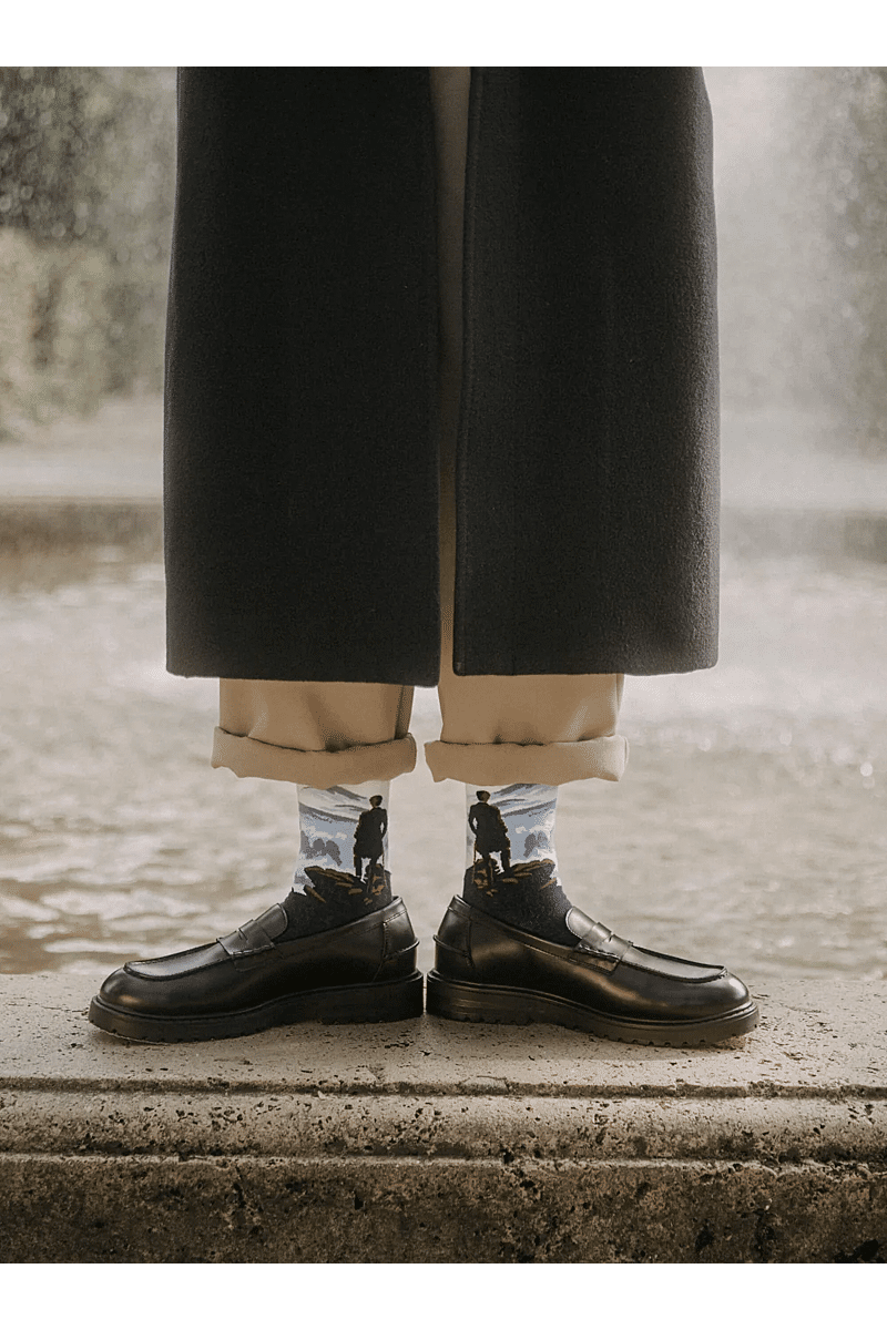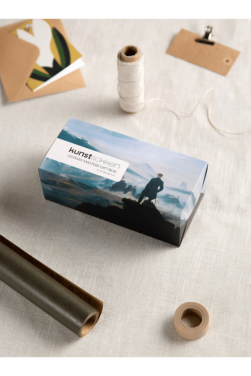 De verpakking is gebaseerd op Friedrich's meesterwerk, met verfijnde details die de sokken prachtig aanvullen.