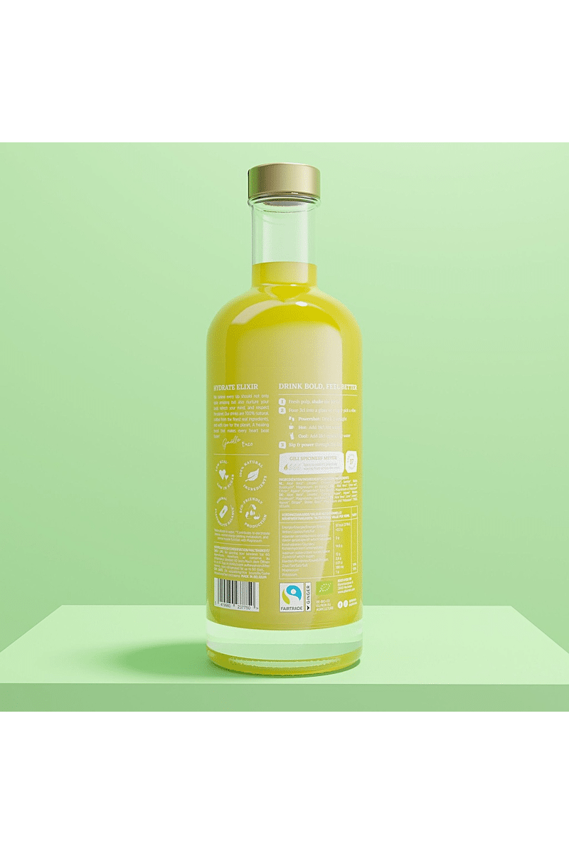 Ingrediënten: Gember*, basililicum*, limoen*, mieriksworten, agave*, wasabi, en water (*biologisch)