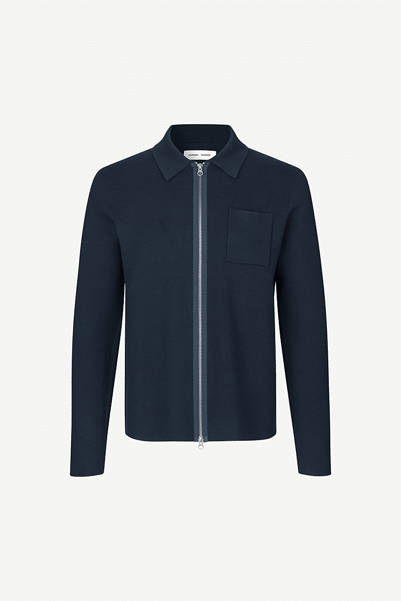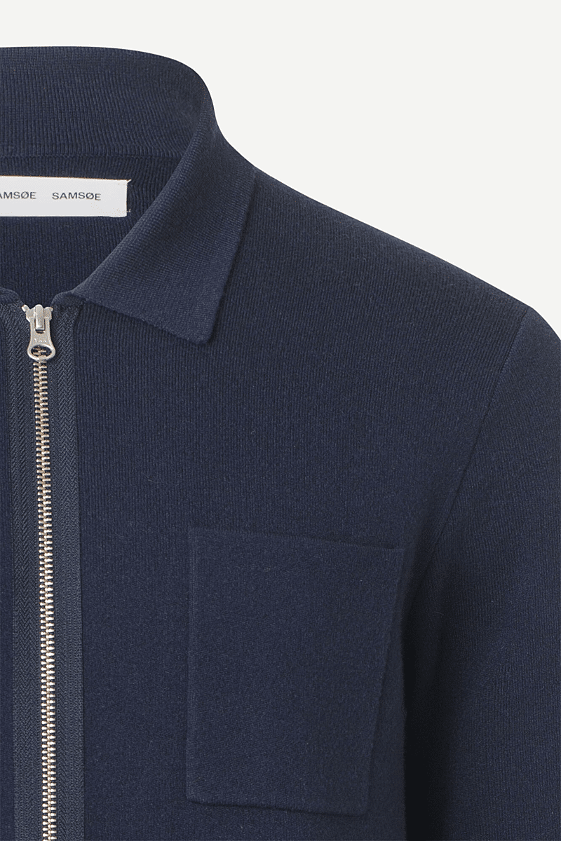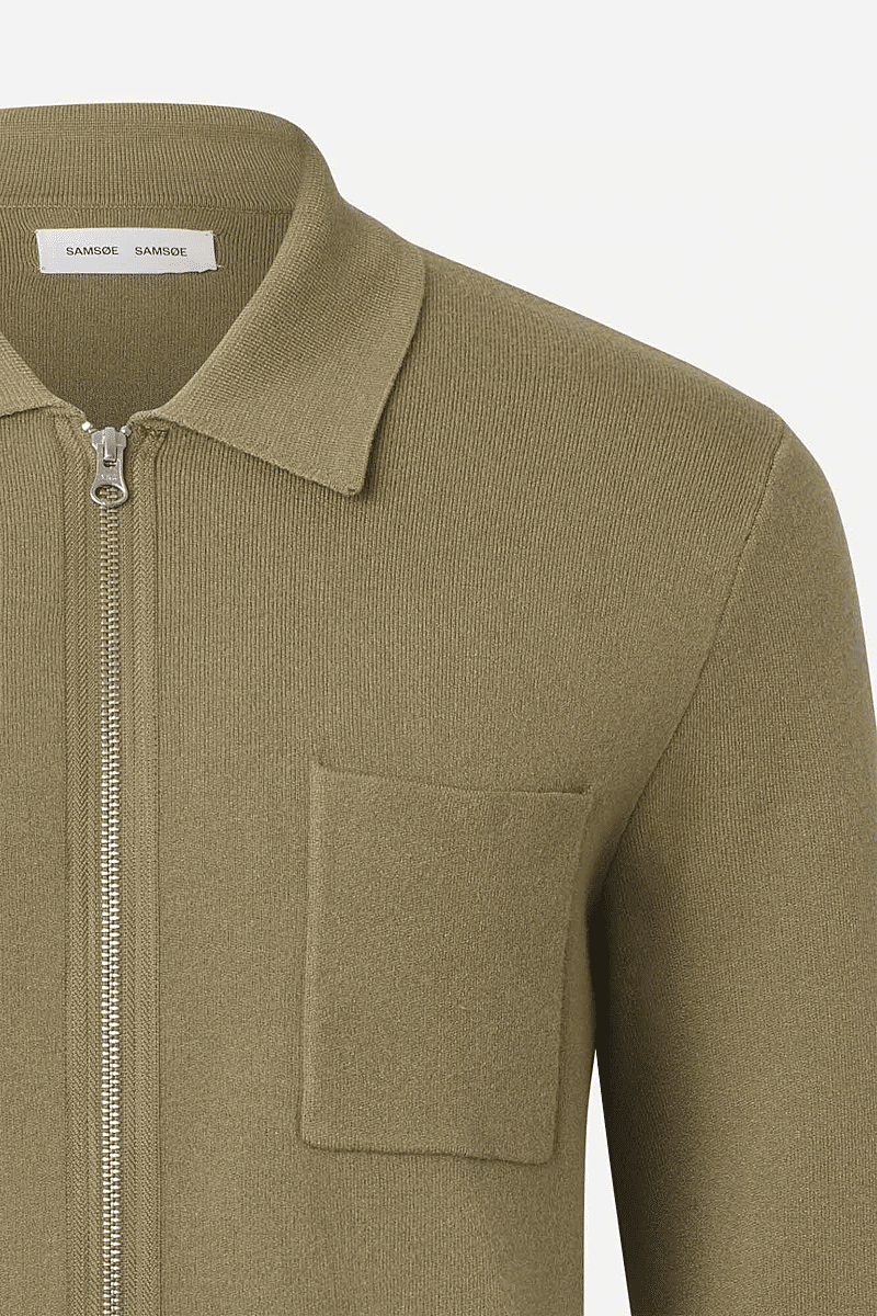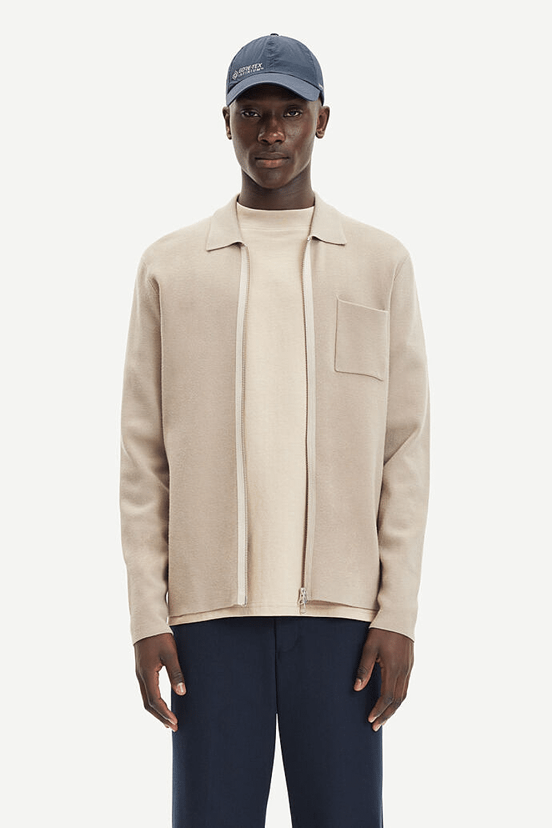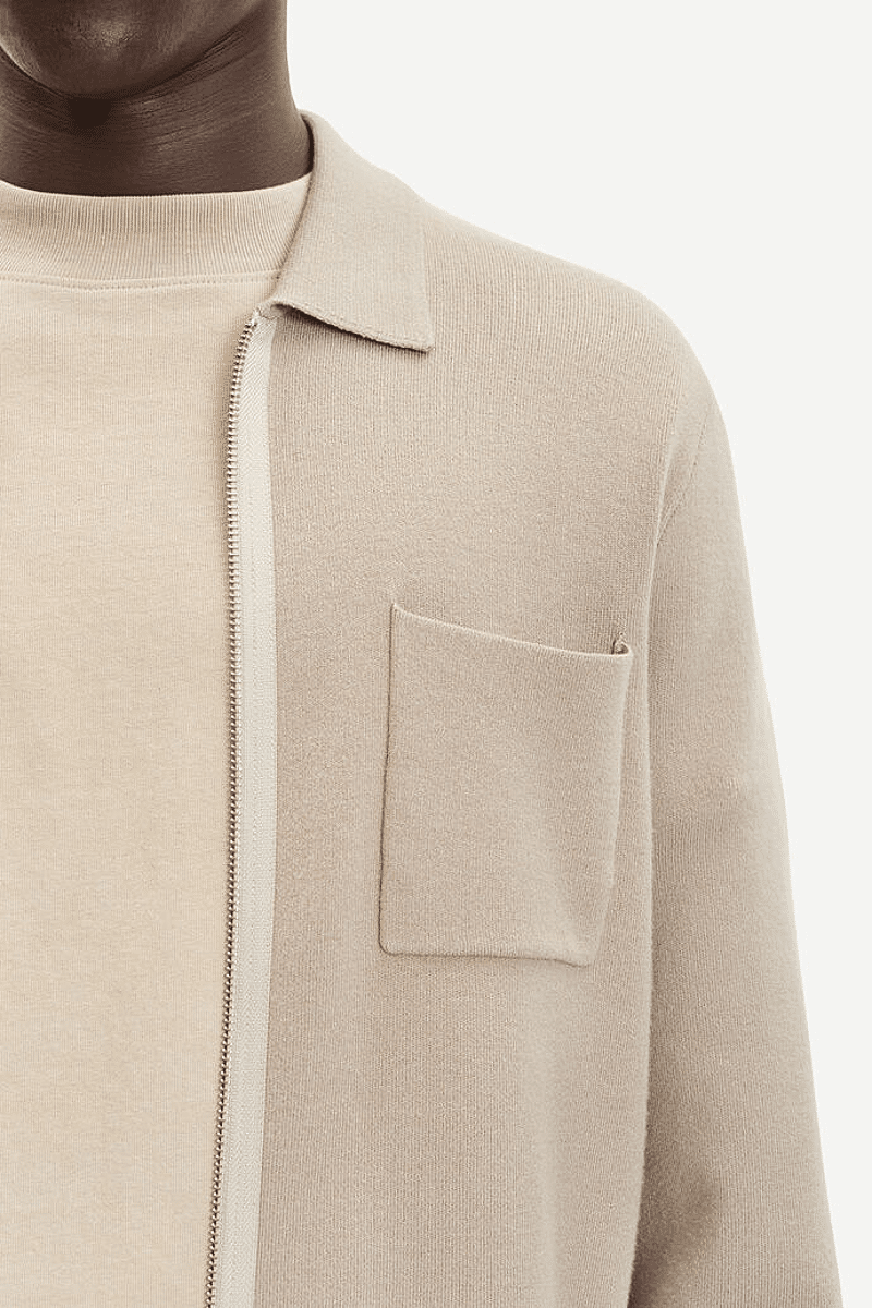 Dit vest met ritssluiting van Samsoe Samsoe is gebreid van een zacht en compact garen. Dit vest met ritssluiting heeft een kraag en borstzak en kan ook dienst doen als overhemd, waardoor dit breisel een veelzijdig kledingstuk is om in laagjes te dragen. Lengte middenachter bij maat large is 70 cm.
