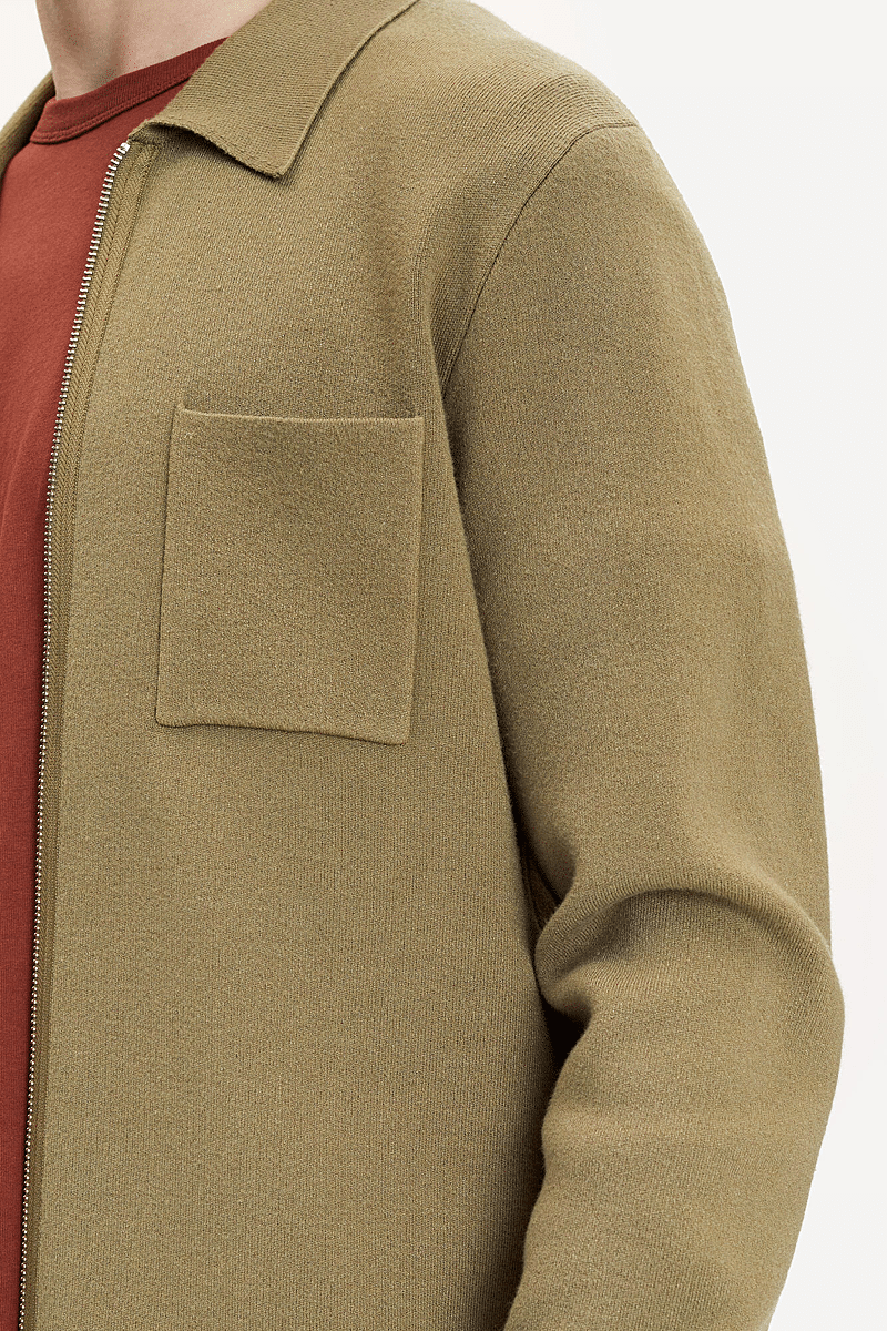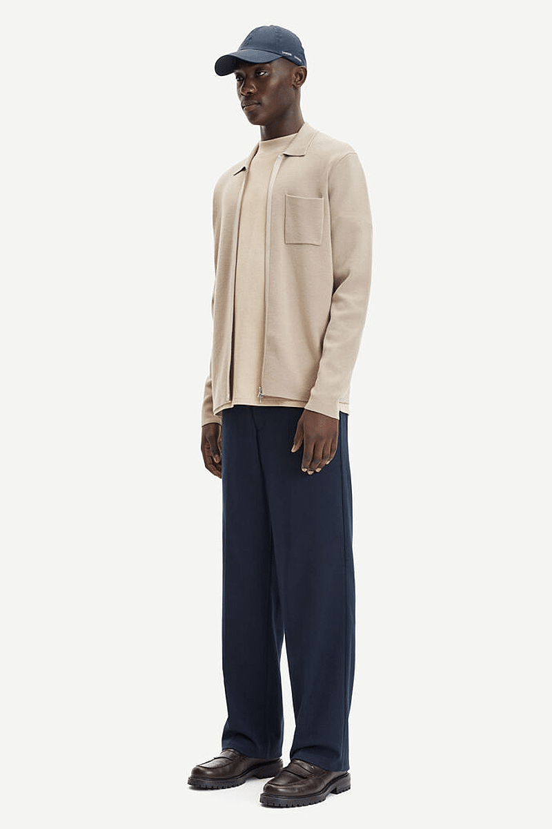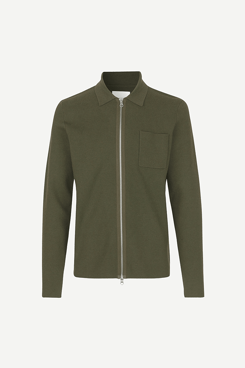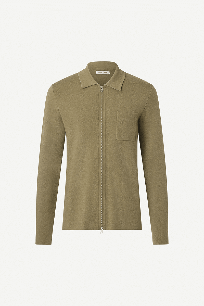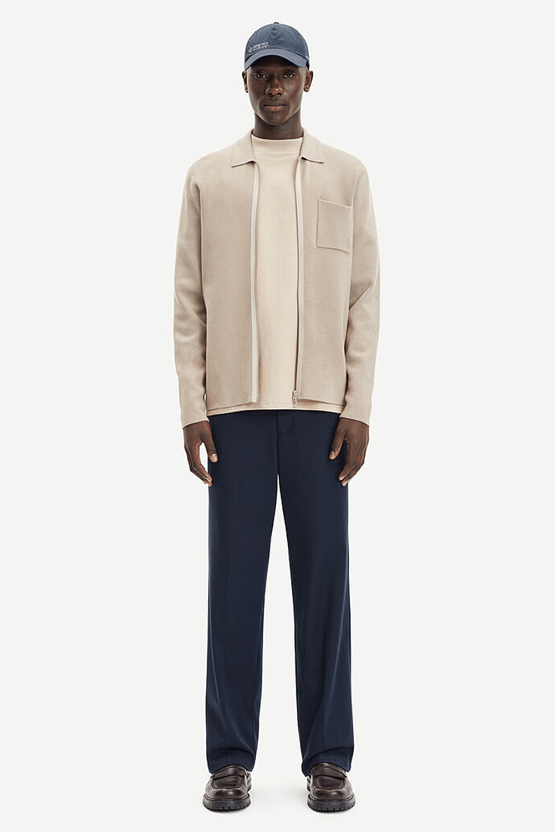 Dit vest met ritssluiting van Samsoe Samsoe is gebreid van een zacht en compact garen. Dit vest met ritssluiting heeft een kraag en borstzak en kan ook dienst doen als overhemd, waardoor dit breisel een veelzijdig kledingstuk is om in laagjes te dragen. Lengte middenachter bij maat large is 70 cm.