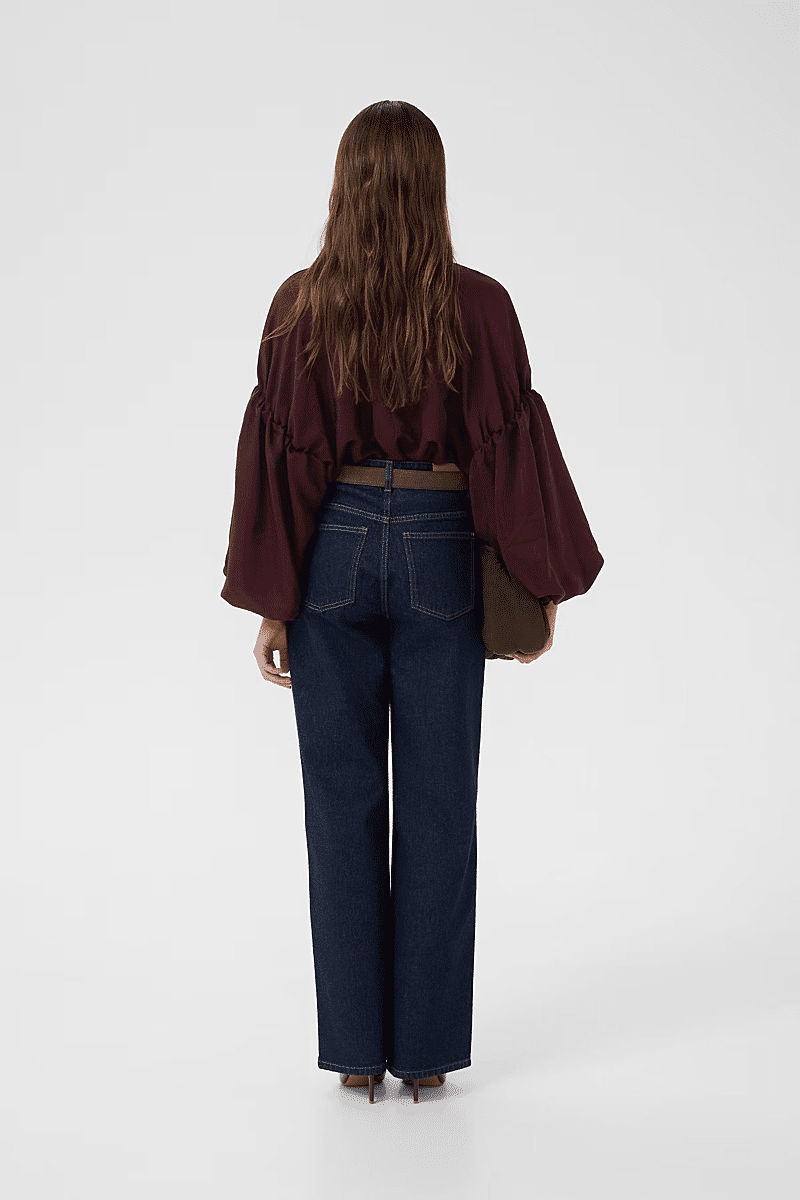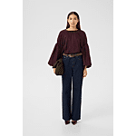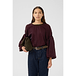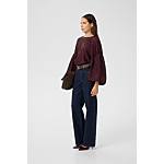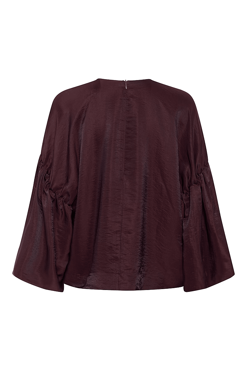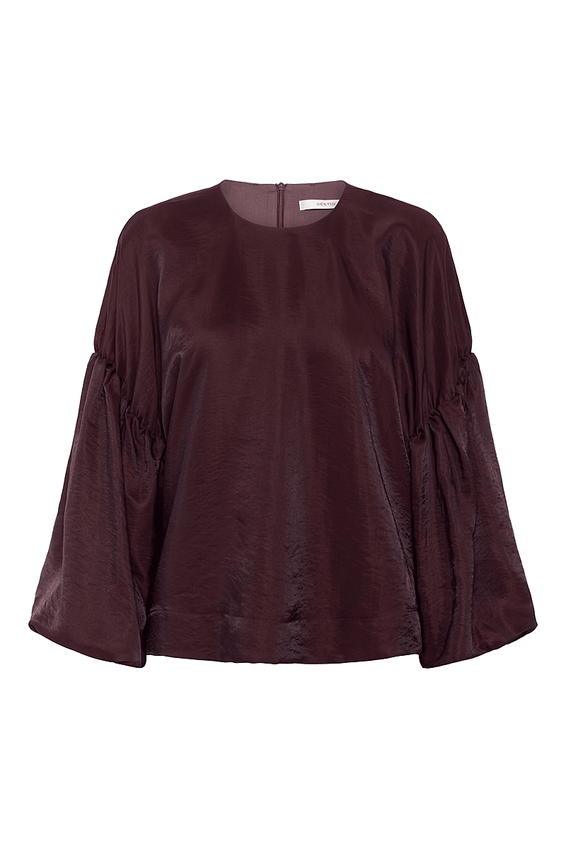 Dit is een blouse van Gestuz in glanzende stof met een ronde halslijn en lange, wijde mouwen. De mouwen zijn voorzien van plooidetails die een lichte en elegante valling creëren.