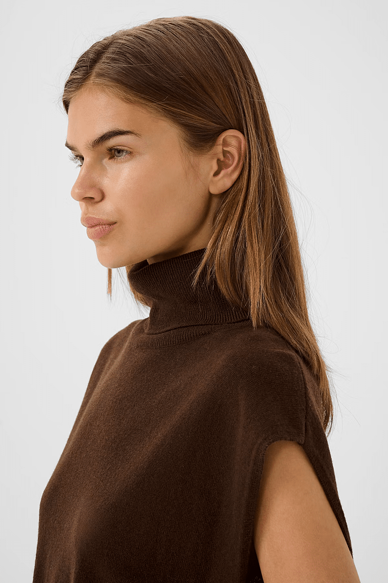 Dit gebreide mouwloze coltruivest van Gestuz heeft een comfortabele, ontspannen pasvorm. Heeft een hoge halslijn en een recht gesneden silhouet, veelzijdig te dragen als laagje of zelfstandig te dragen in elk seizoen.