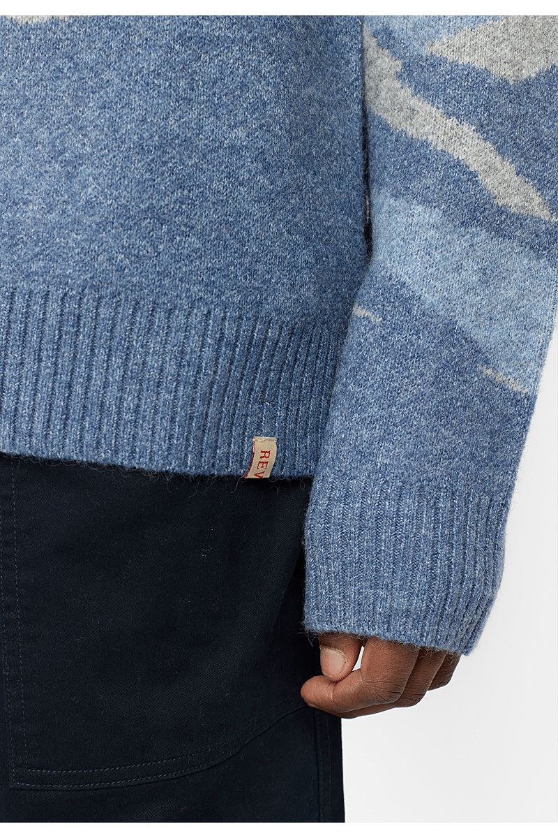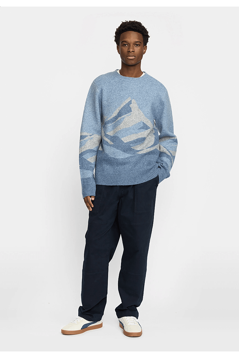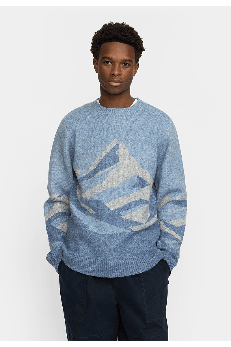 Deze comfortabele en dikke trui met ronde hals van Revolution is jacquardgebreid met een groot grafisch bergmotief in een verfijnd kleurenpalet. Een must-have voor het koude seizoen. Jacquard is een breitechniek waarbij complexe patronen in twee of meer kleuren in de stof kunnen worden gebreid. Het wordt meestal gebruikt om truien te maken met grootschalige patronen, ingewikkelde ontwerpen of gedetailleerde afbeeldingen. Omdat alle garens in de omgekeerde richting van elke rij worden gebreid, ontstaat er ook een product dat veel zwaarder, dikker en stijver is dan een trui die met een vlakbreitechniek is gebreid. Dit betekent dat een trui die met een jacquardtechniek in een maat 7 is gebreid, er net zo zwaar uitziet als een vlakgebreide trui die met een maat 3 is gebreid. Deze zware trui met normale pasvorm is gemaakt van een mix van acryl en gerecycled polyester en gebreid in dikte 7 en is perfect om je comfortabel te houden terwijl je de stedelijke omgeving verkent