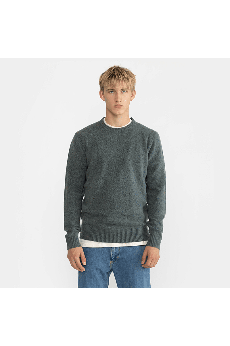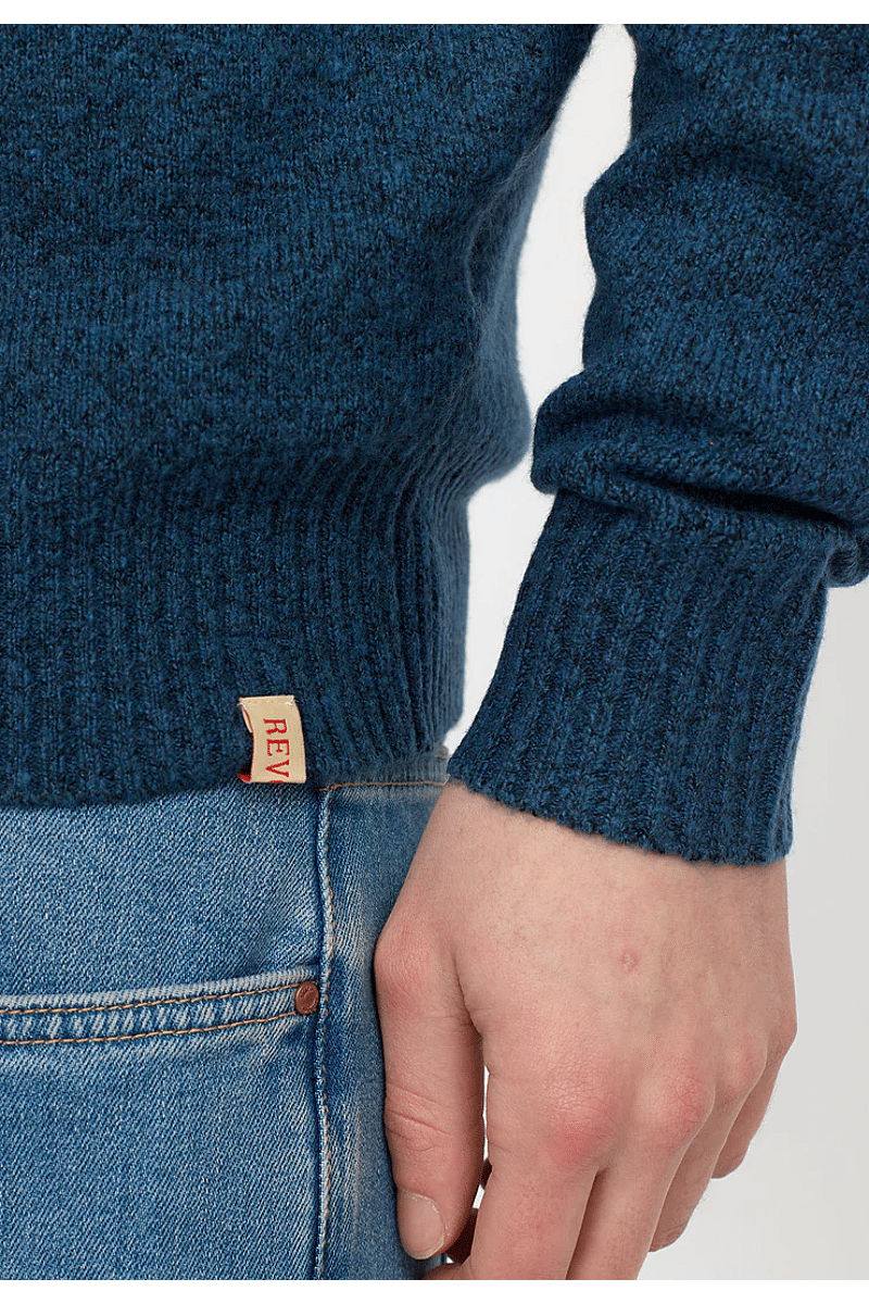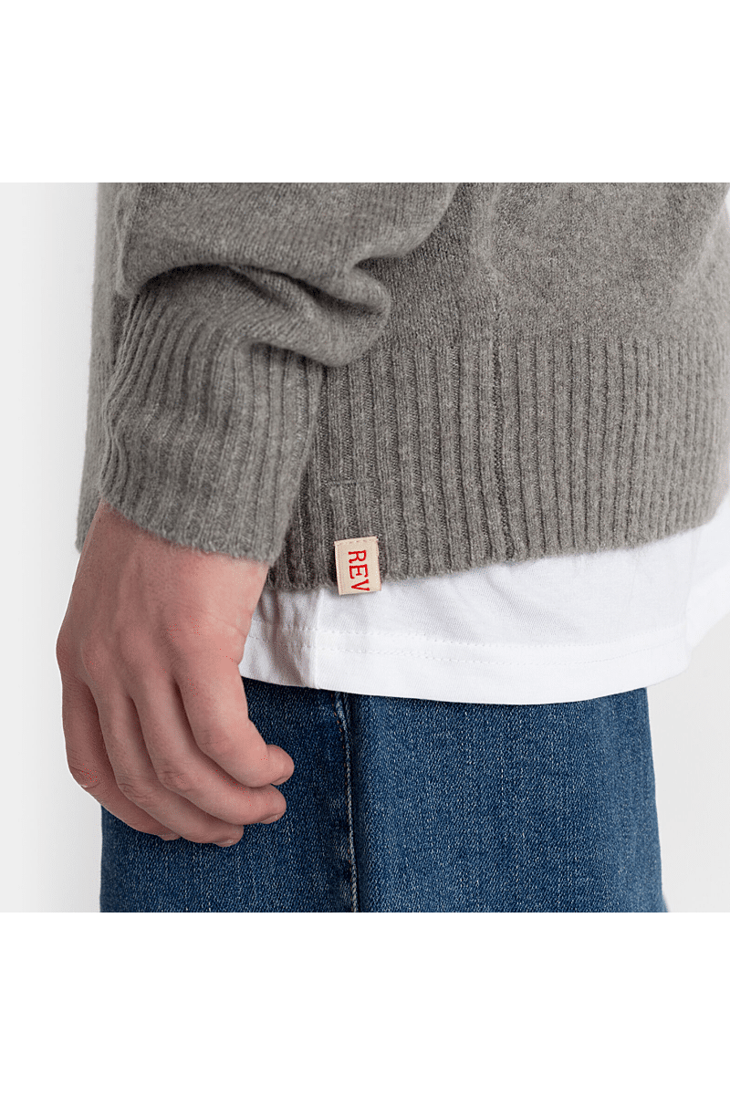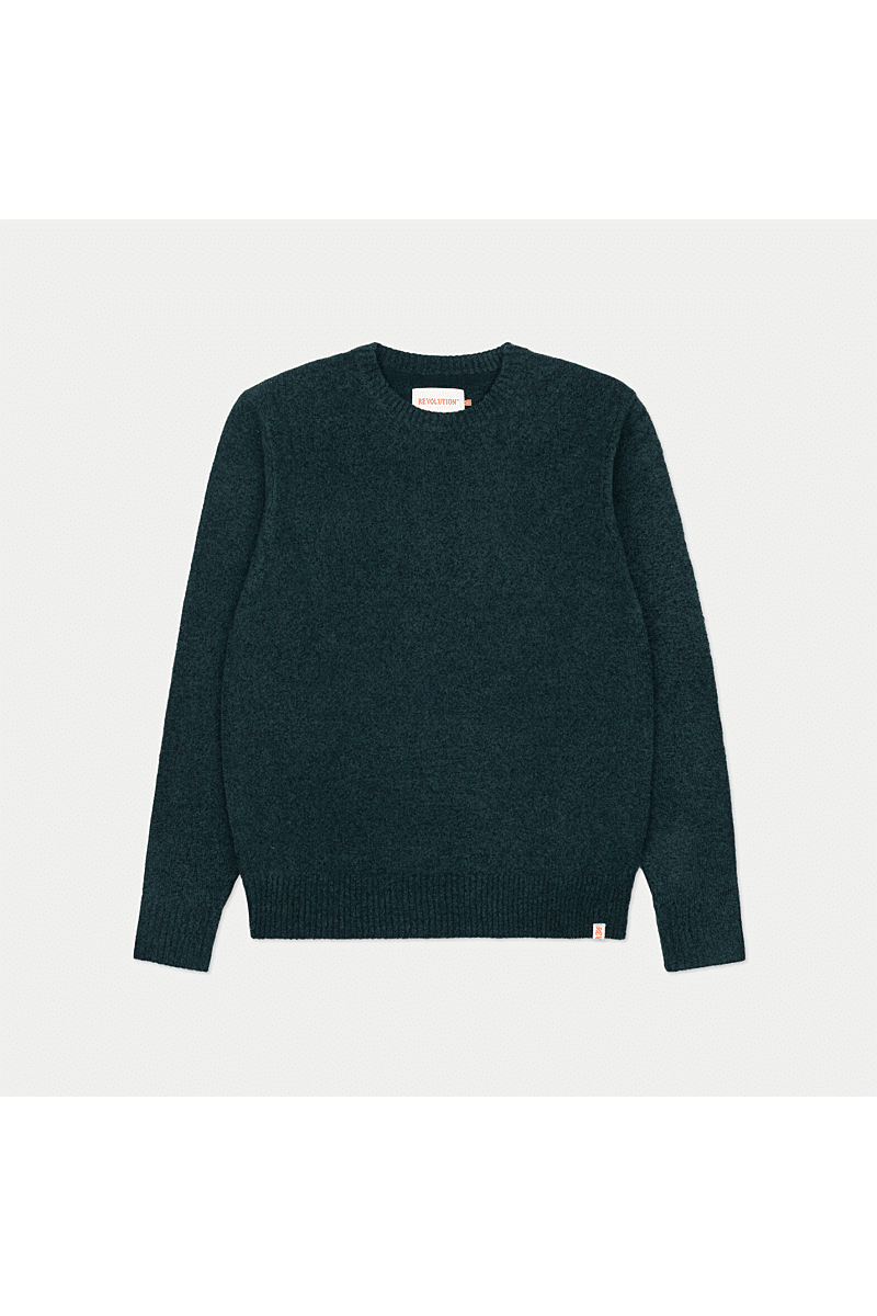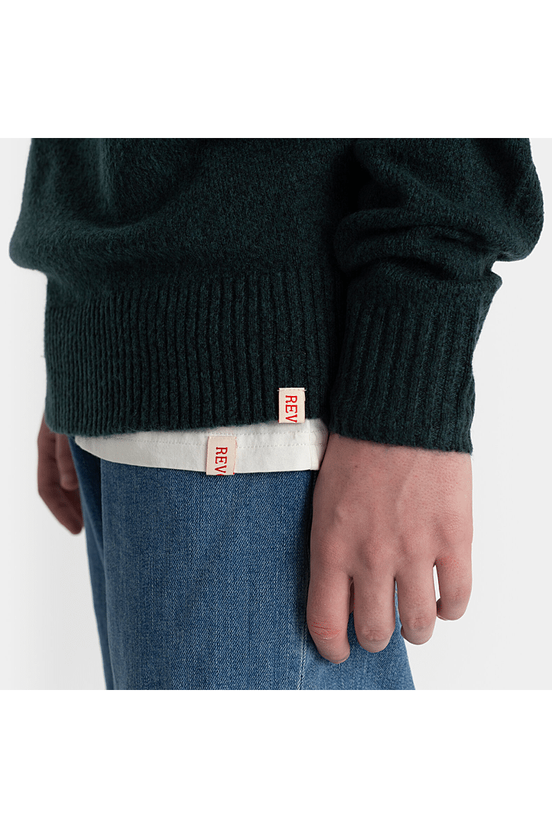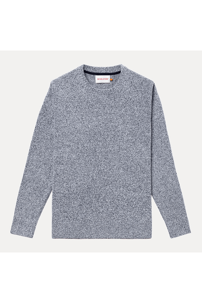 Deze regular-fit trui met ronde hals van Revolution is geschikt om overal mee te combineren op koudere dagen. Het is gebreid van een gerecycled garen van acryl en wol, gesponnen van zowel rechte als harige vezels, waardoor de trui een zachte, gestructureerde afwerking krijgt. De gemêleerde kleur met subtiele tweekleurige uitstraling en de geribbelde details geven de trui een voelbare afwerking. Deze trui is gebreid in een medium maat 7 en kan op zichzelf staand worden gebruikt op koude dagen, of als veelzijdig isolatiestuk in de piekwinter