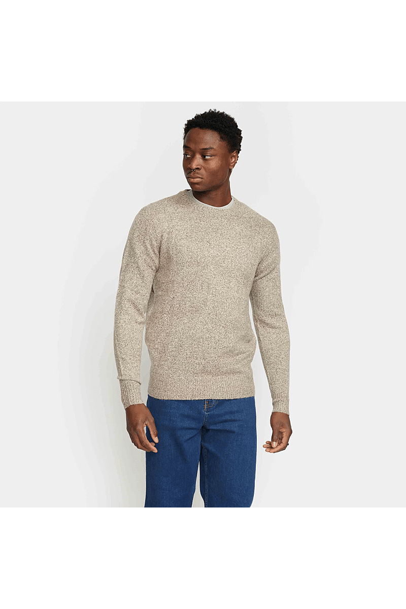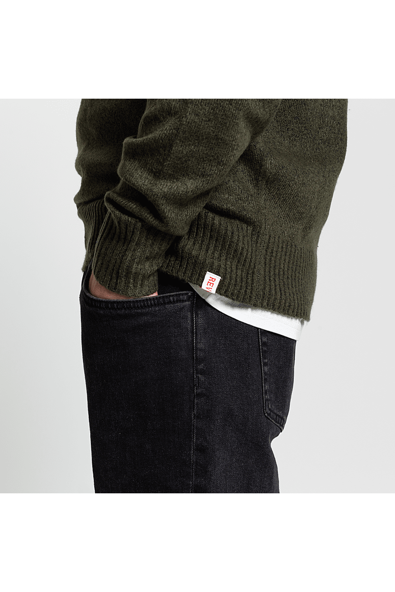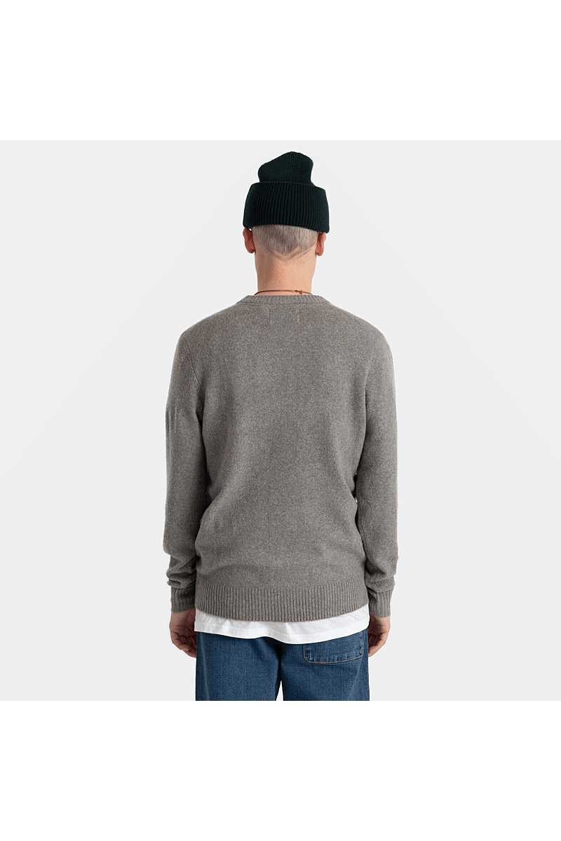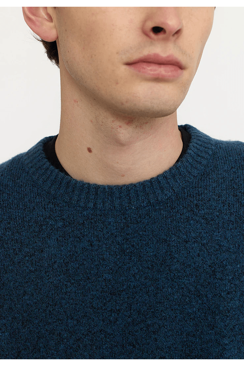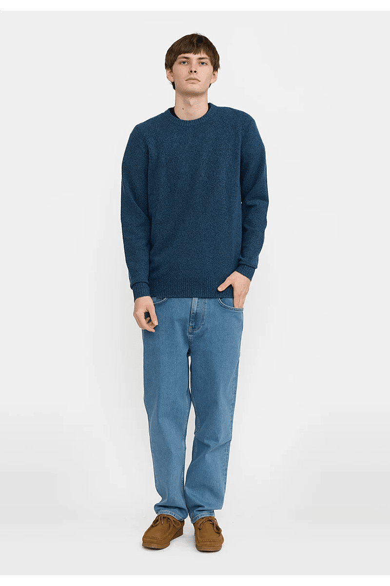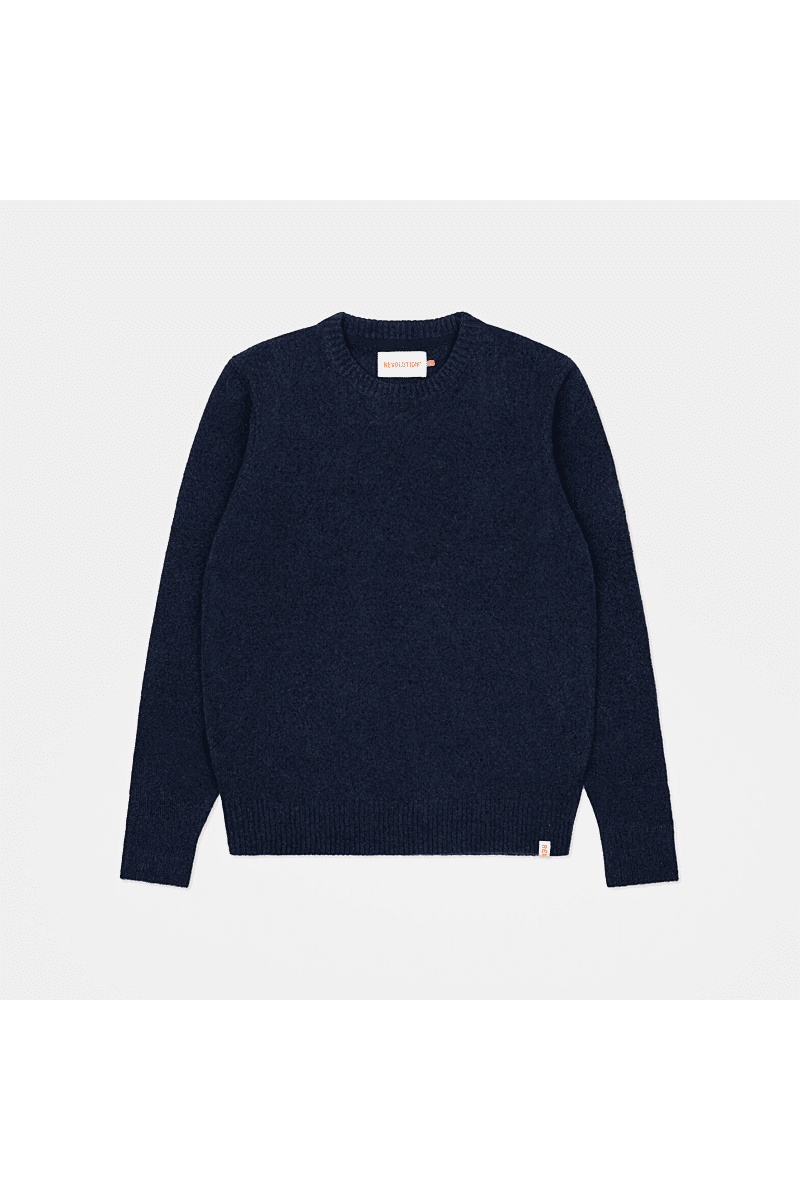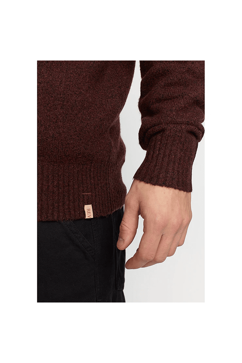 Deze regular-fit trui met ronde hals van Revolution is geschikt om overal mee te combineren op koudere dagen. Het is gebreid van een gerecycled garen van acryl en wol, gesponnen van zowel rechte als harige vezels, waardoor de trui een zachte, gestructureerde afwerking krijgt. De gemêleerde kleur met subtiele tweekleurige uitstraling en de geribbelde details geven de trui een voelbare afwerking. Deze trui is gebreid in een medium maat 7 en kan op zichzelf staand worden gebruikt op koude dagen, of als veelzijdig isolatiestuk in de piekwinter