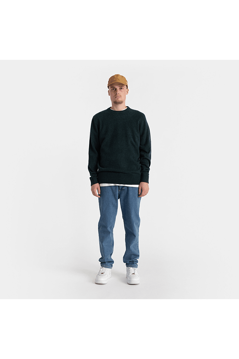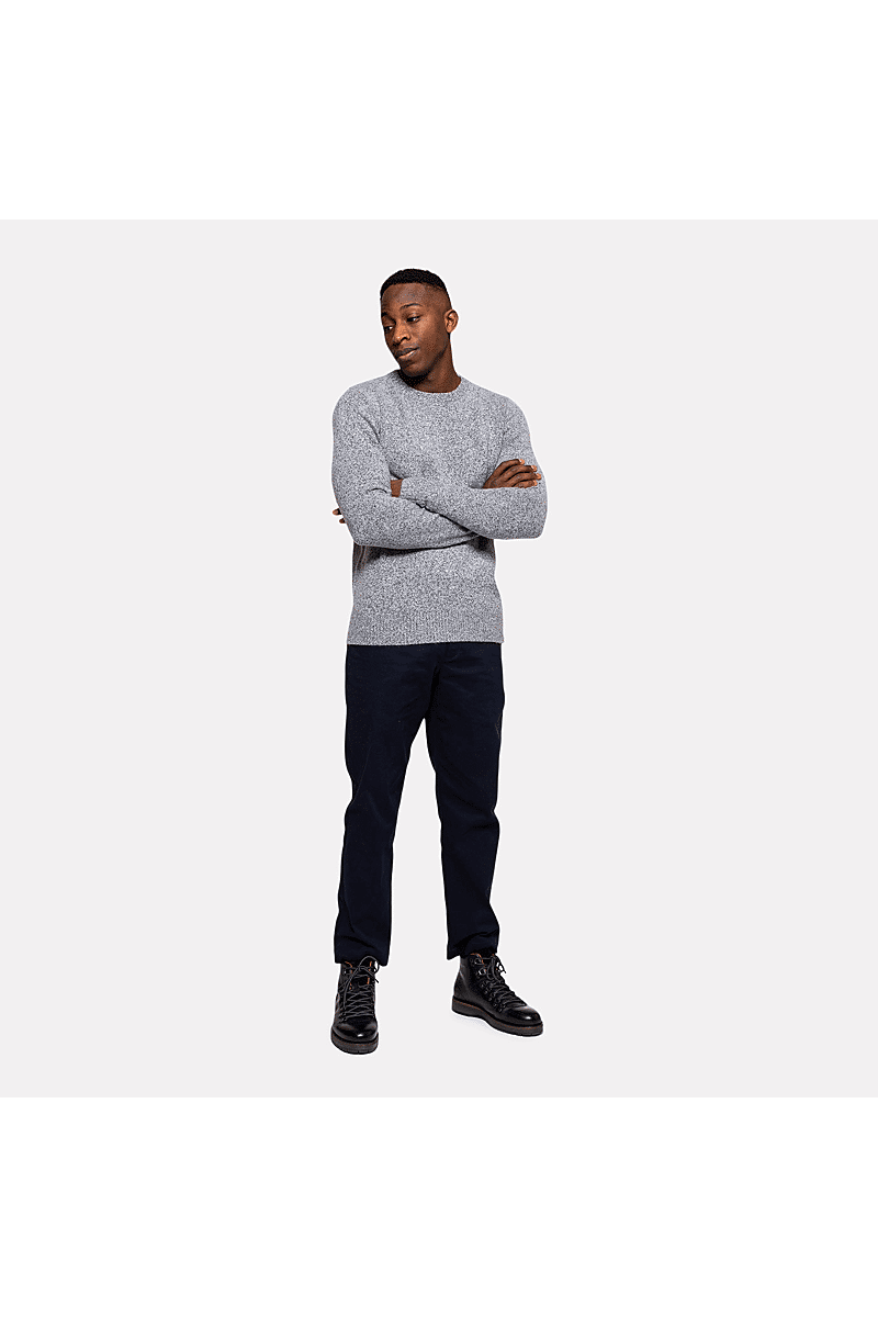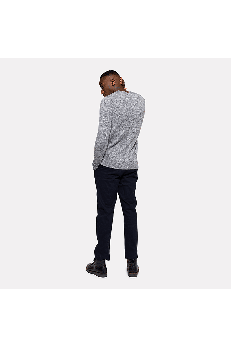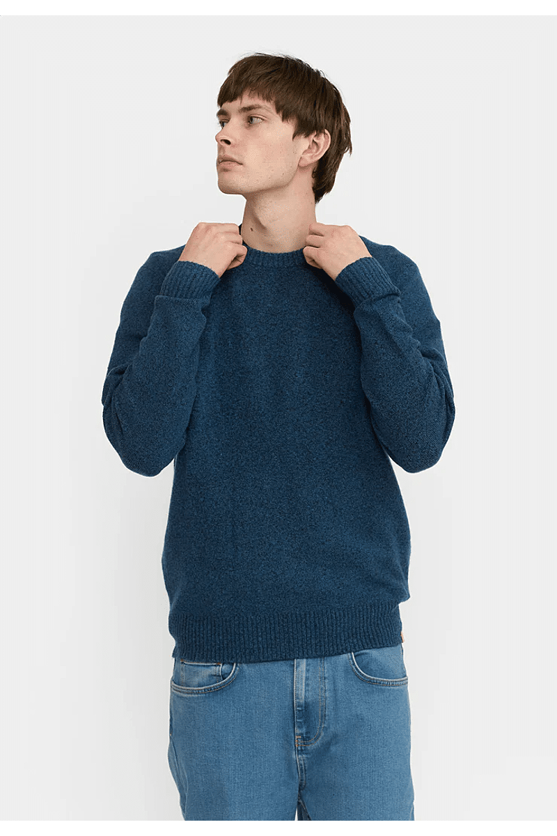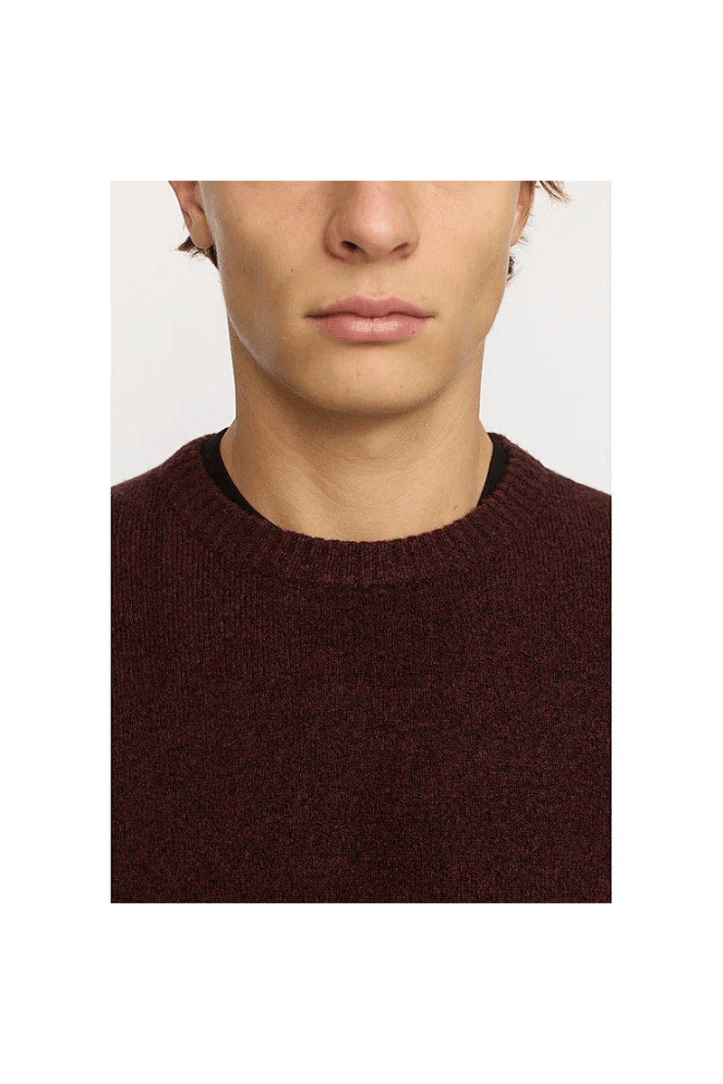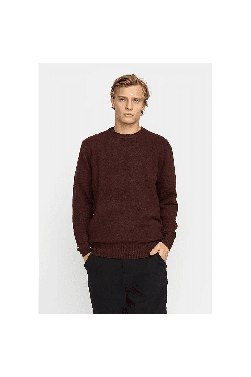 Deze regular-fit trui met ronde hals van Revolution is geschikt om overal mee te combineren op koudere dagen. Het is gebreid van een gerecycled garen van acryl en wol, gesponnen van zowel rechte als harige vezels, waardoor de trui een zachte, gestructureerde afwerking krijgt. De gemêleerde kleur met subtiele tweekleurige uitstraling en de geribbelde details geven de trui een voelbare afwerking. Deze trui is gebreid in een medium maat 7 en kan op zichzelf staand worden gebruikt op koude dagen, of als veelzijdig isolatiestuk in de piekwinter