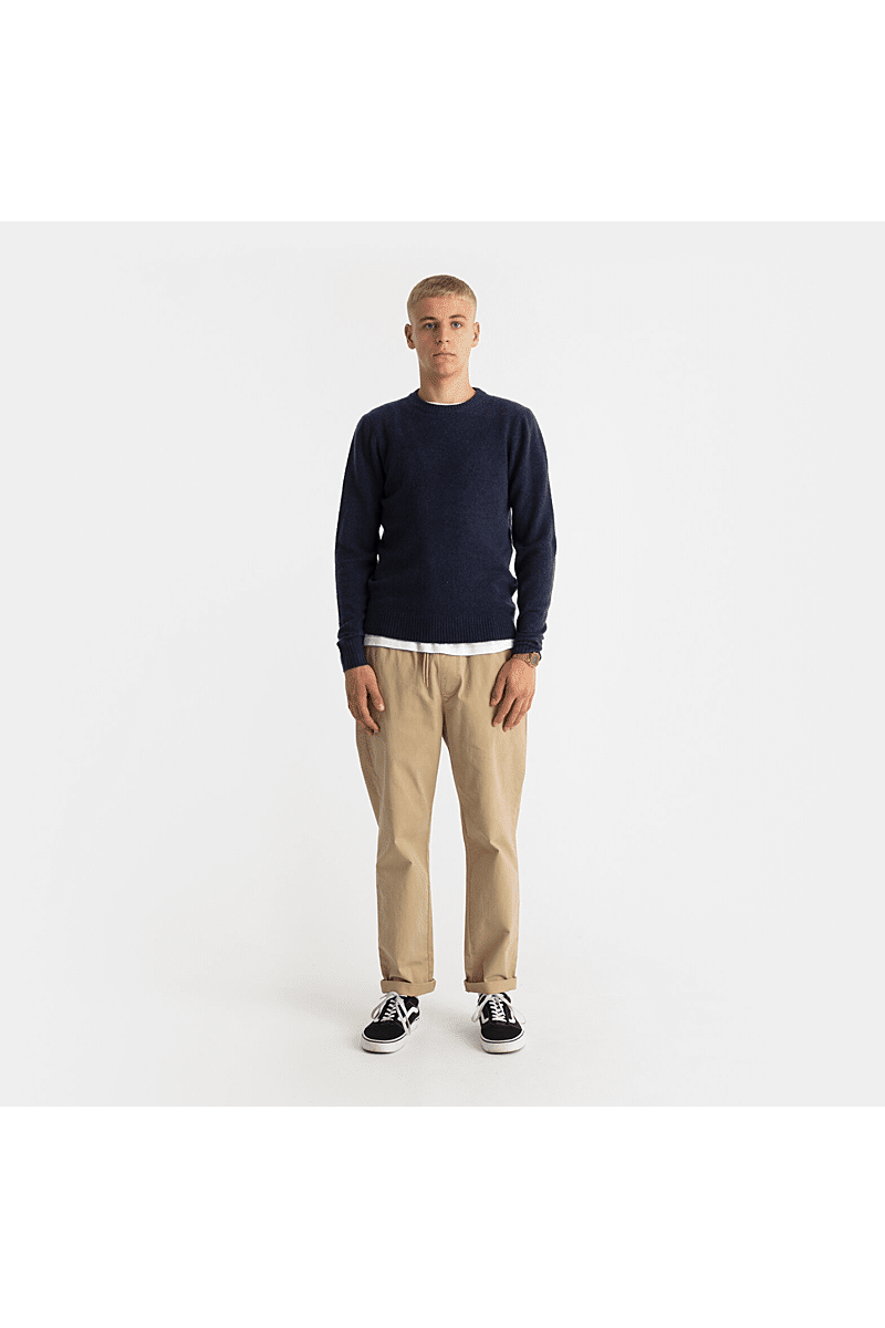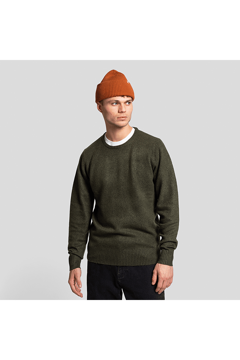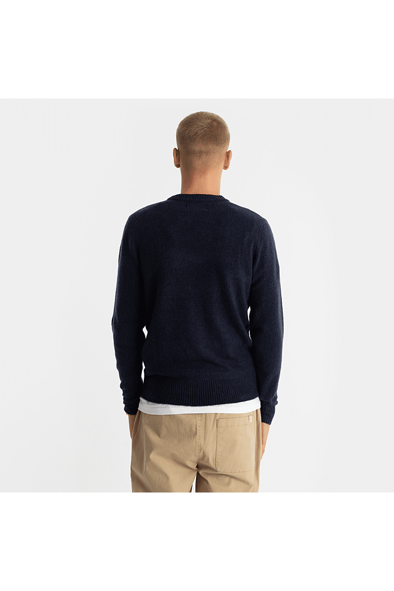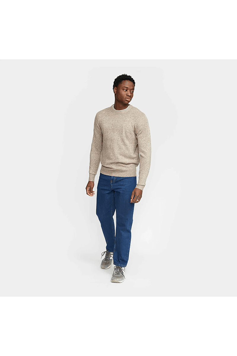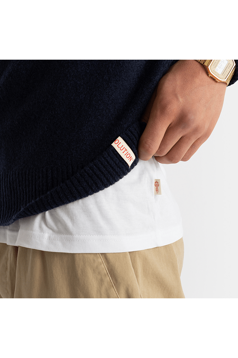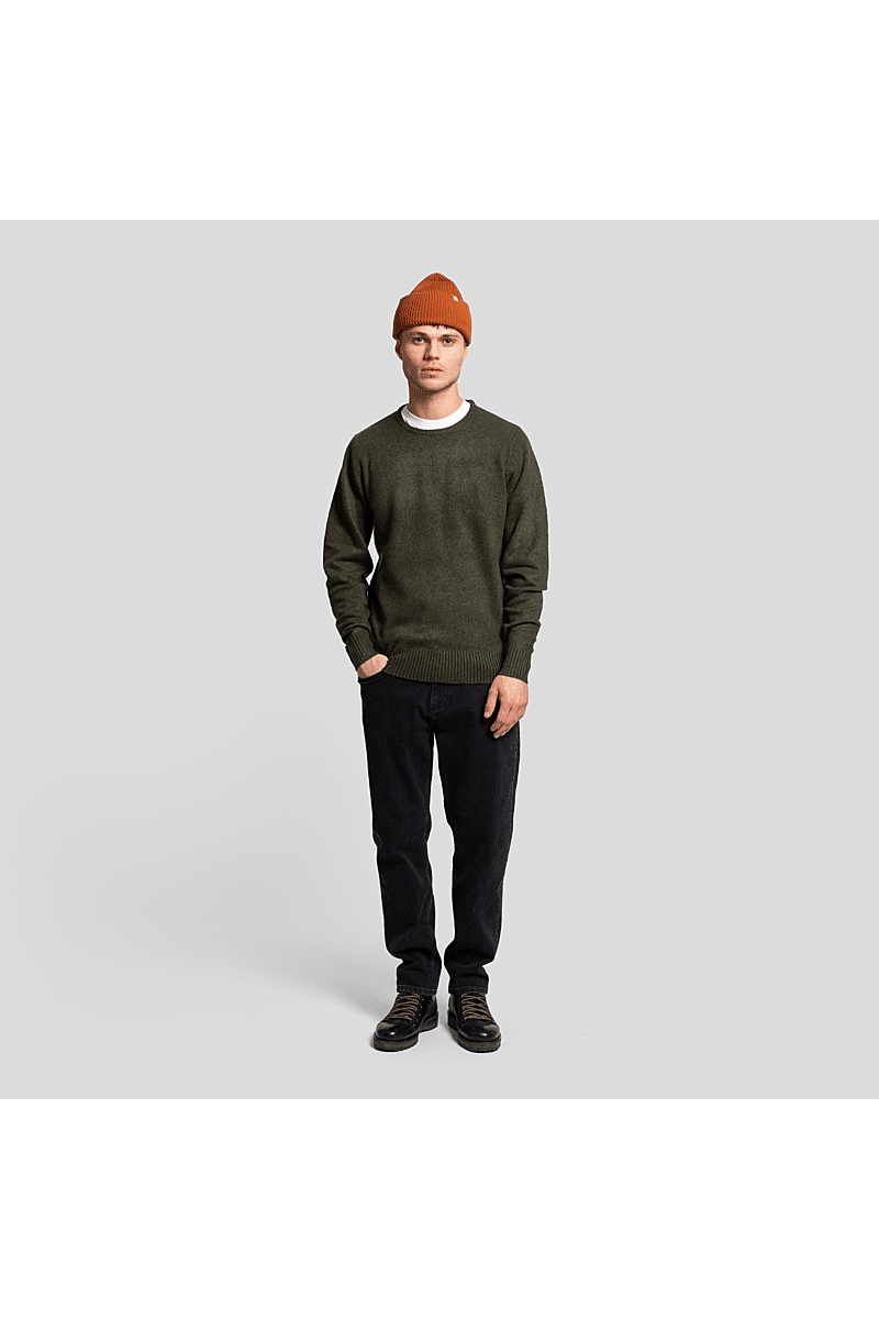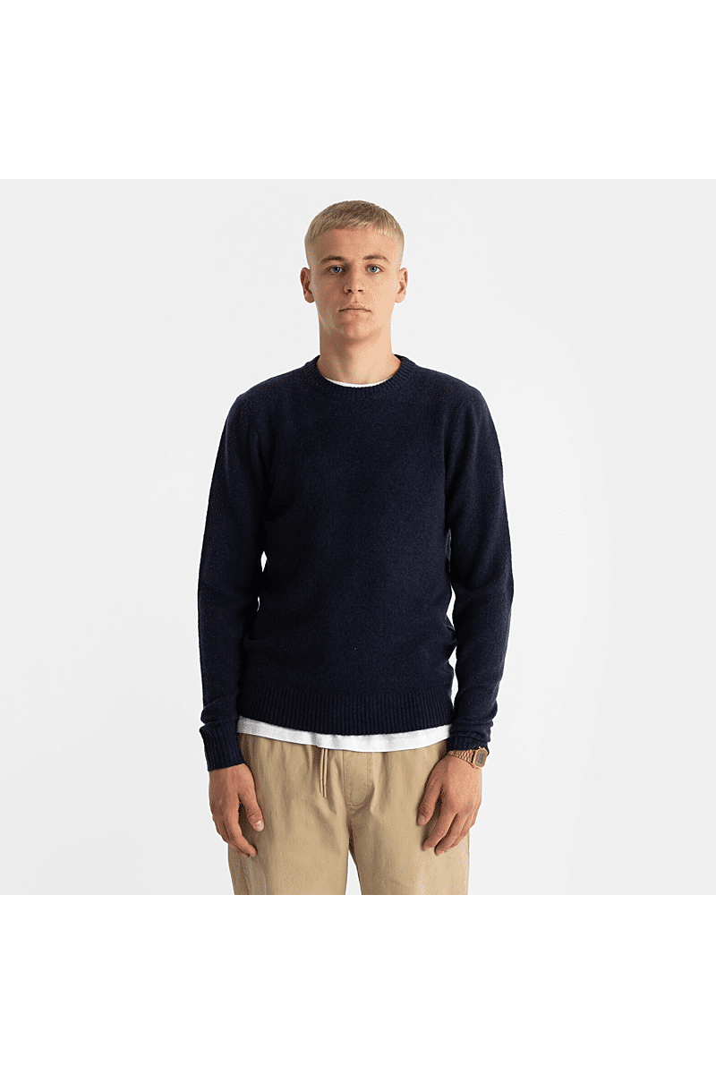 Deze regular-fit trui met ronde hals van Revolution is geschikt om overal mee te combineren op koudere dagen. Het is gebreid van een gerecycled garen van acryl en wol, gesponnen van zowel rechte als harige vezels, waardoor de trui een zachte, gestructureerde afwerking krijgt. De gemêleerde kleur met subtiele tweekleurige uitstraling en de geribbelde details geven de trui een voelbare afwerking. Deze trui is gebreid in een medium maat 7 en kan op zichzelf staand worden gebruikt op koude dagen, of als veelzijdig isolatiestuk in de piekwinter