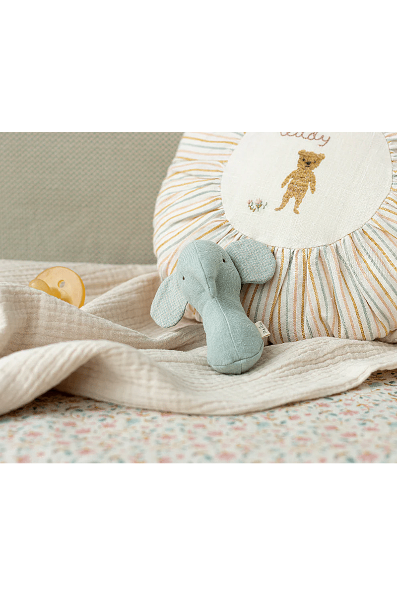 Deze Maileg rammelaar is perfect gevormd voor een kleine hand en heeft een stimulerend ratelgeluid. Het is gemaakt van zachte stoffen met unieke prints en verpakt in een mooie geschenkdoos.