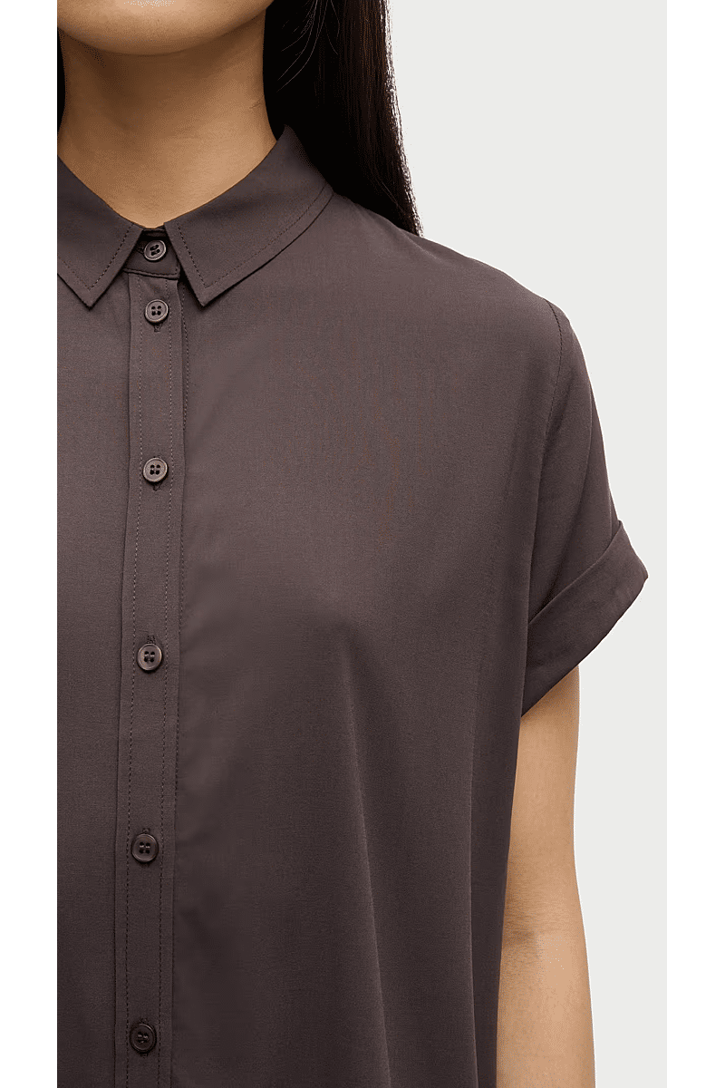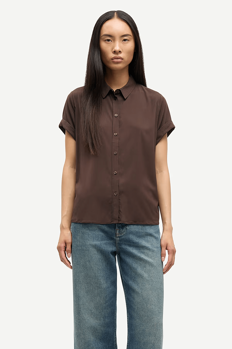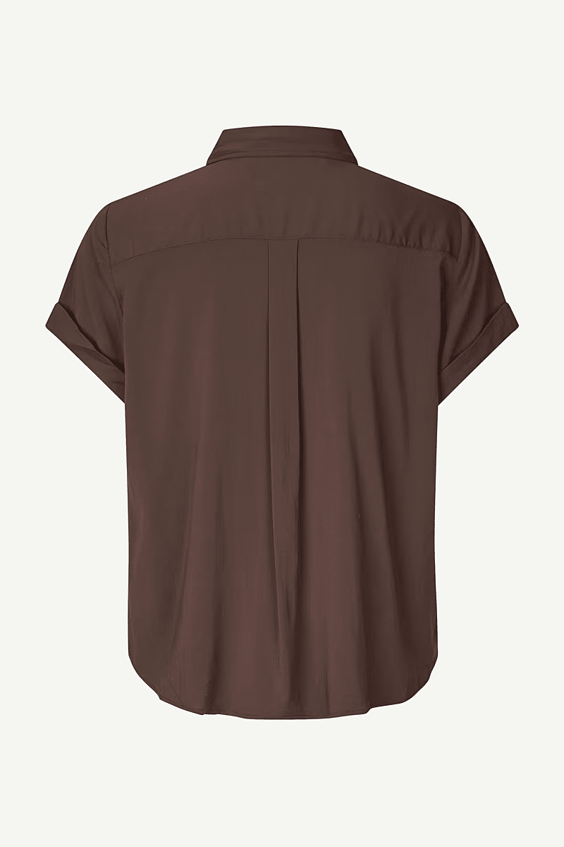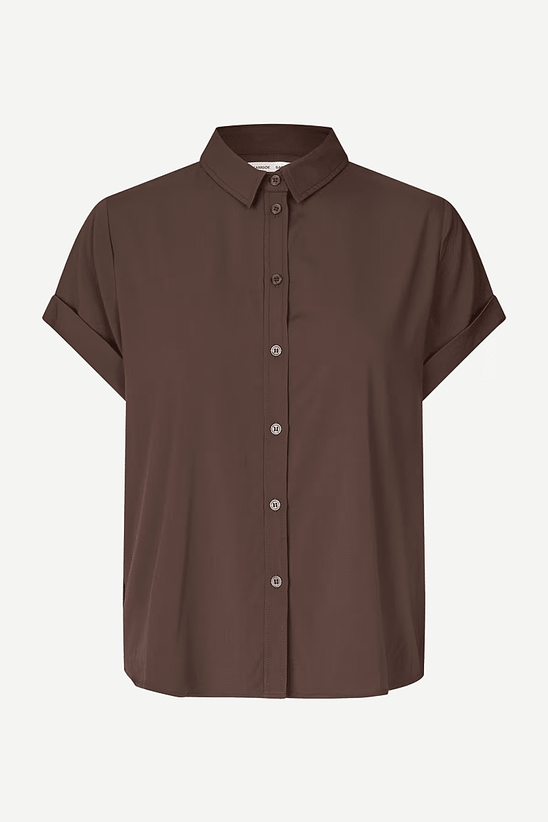 Dit shirt met korte mouwen van Samsoe Samsoe is ontworpen met nette teruggeslagen manchetten en een gebogen zoom. Knoopssluiting middenvoor dit shirt is afgewerkt met een puntige kraag. / Lengte op midden rug voor maat small is 64 cm.