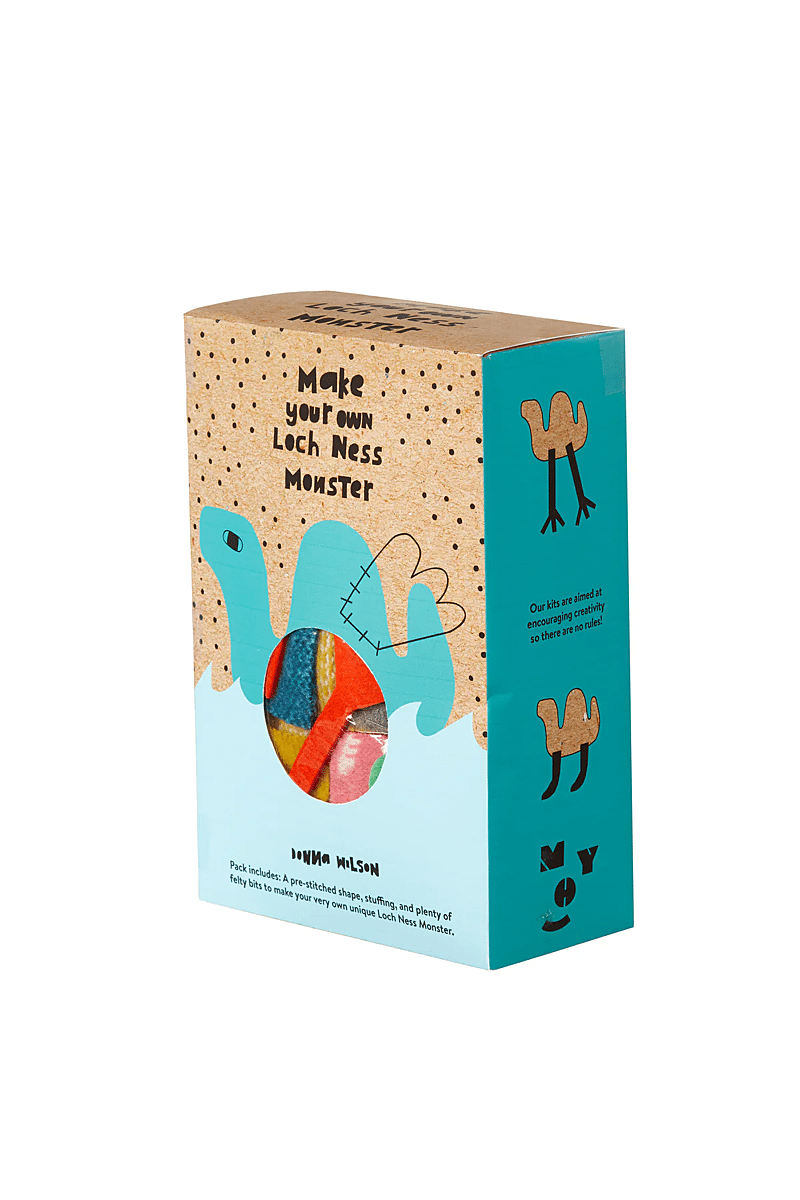 Elke pakket bevat een voorgestikt lamswollen monster, vulling van gerecyclede wol, stukjes vilt en stapsgewijze instructies om je eigen unieke monster van Loch Ness te maken. Gebruik het vilt en de gebreide stof om een gezicht, poten of zelfs vleugels te maken. Je kunt een boos of een schattig monster maken, de keuze is aan jou! Deze pakketten zijn bedoeld om creativiteit te stimuleren, dus er zijn geen regels, laat je fantasie de vrije loop!