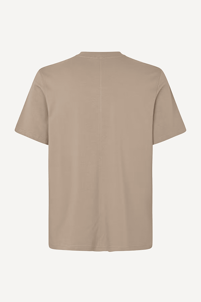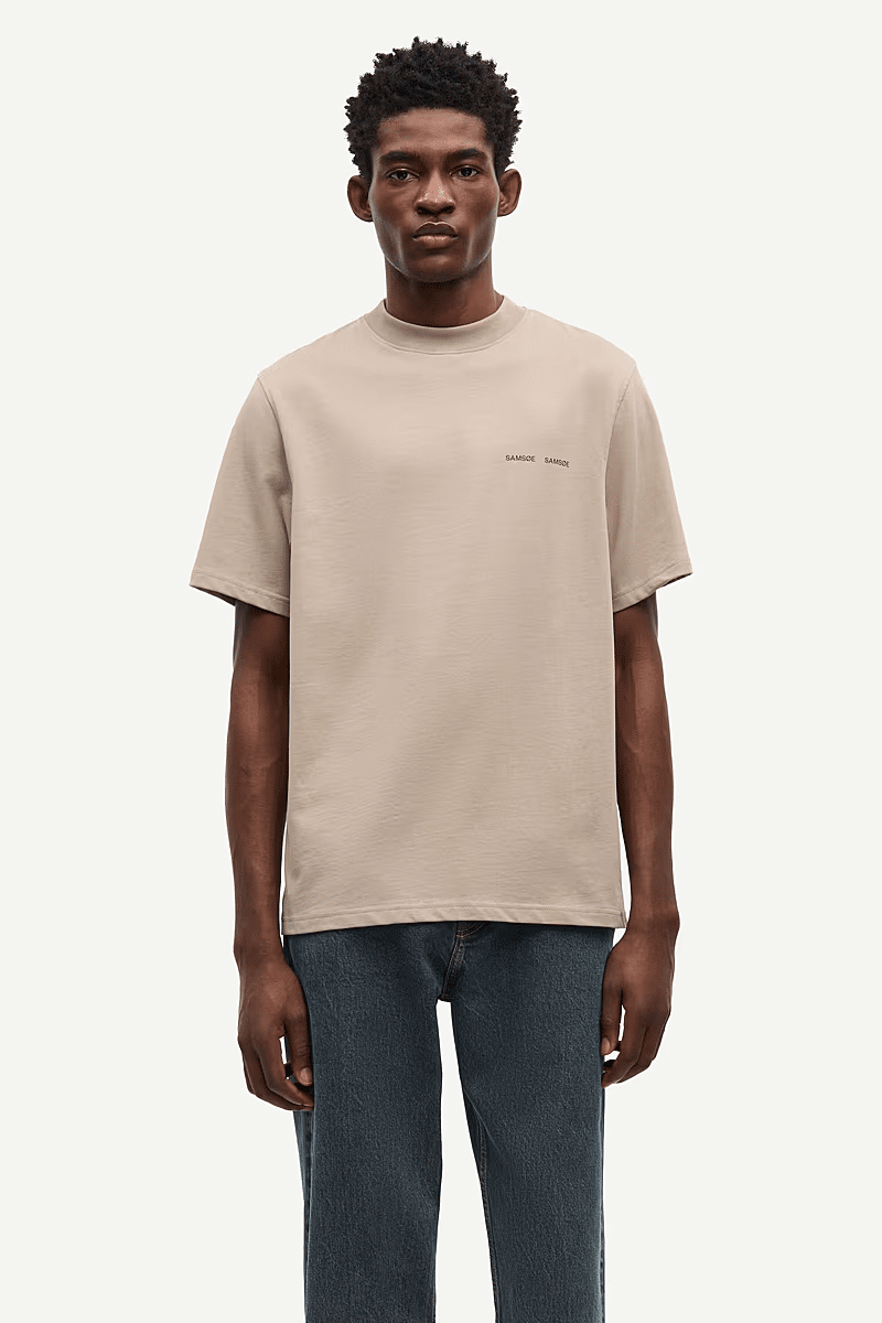 Dit is een relaxed fit T-shirt met korte mouwen, een mooi aansluitende coltrui met ribboord, een Samsøe Samsøe-print op de borst en een naad middenachter. GOTS-tex gecertificeerde jersey van 100% biologisch katoen met lichte wassing.