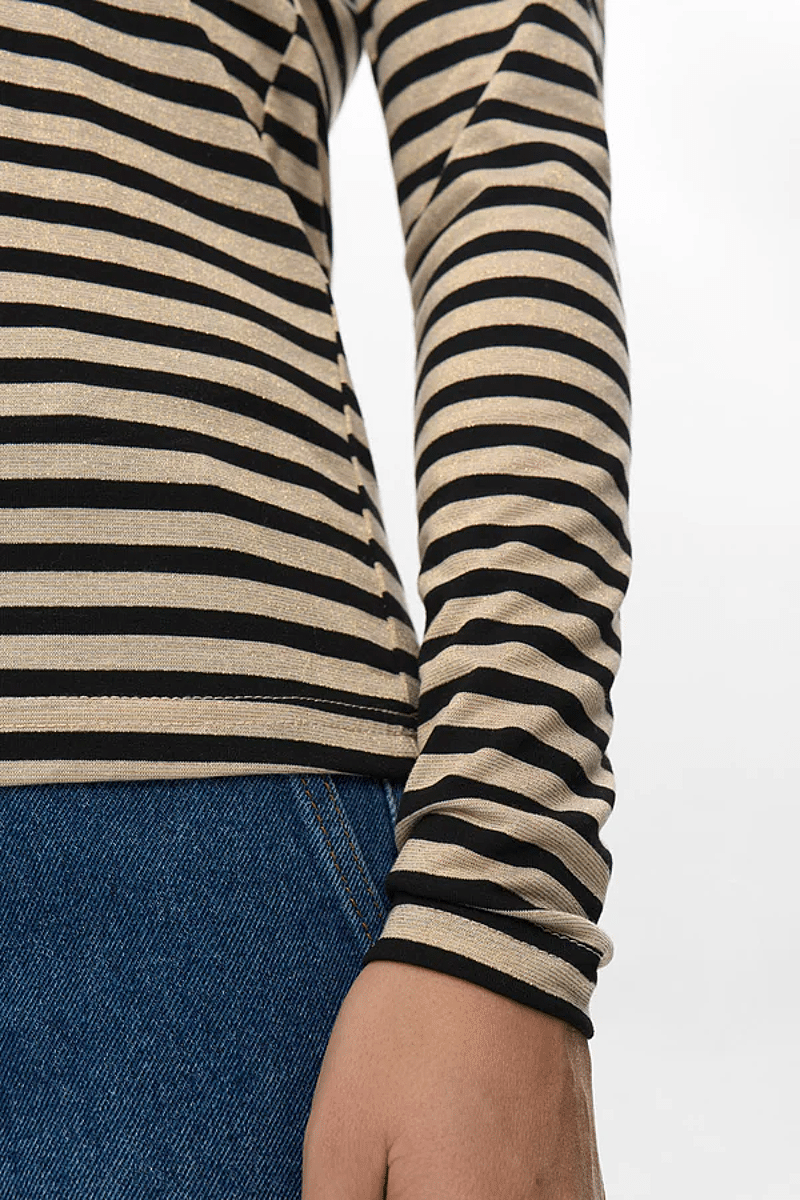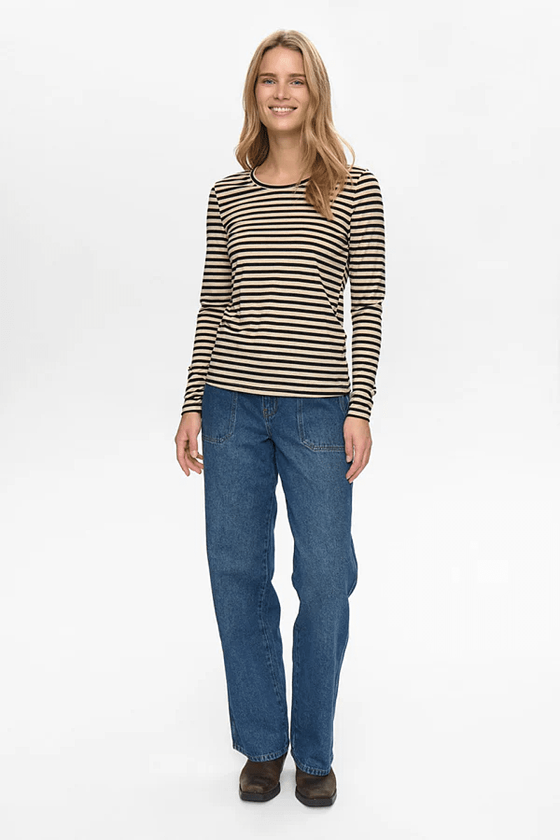 Dit is een gestreept t-shirt met lange mouwen en ronde halslijn van Nümph