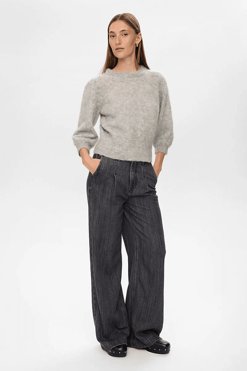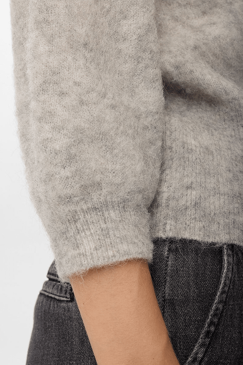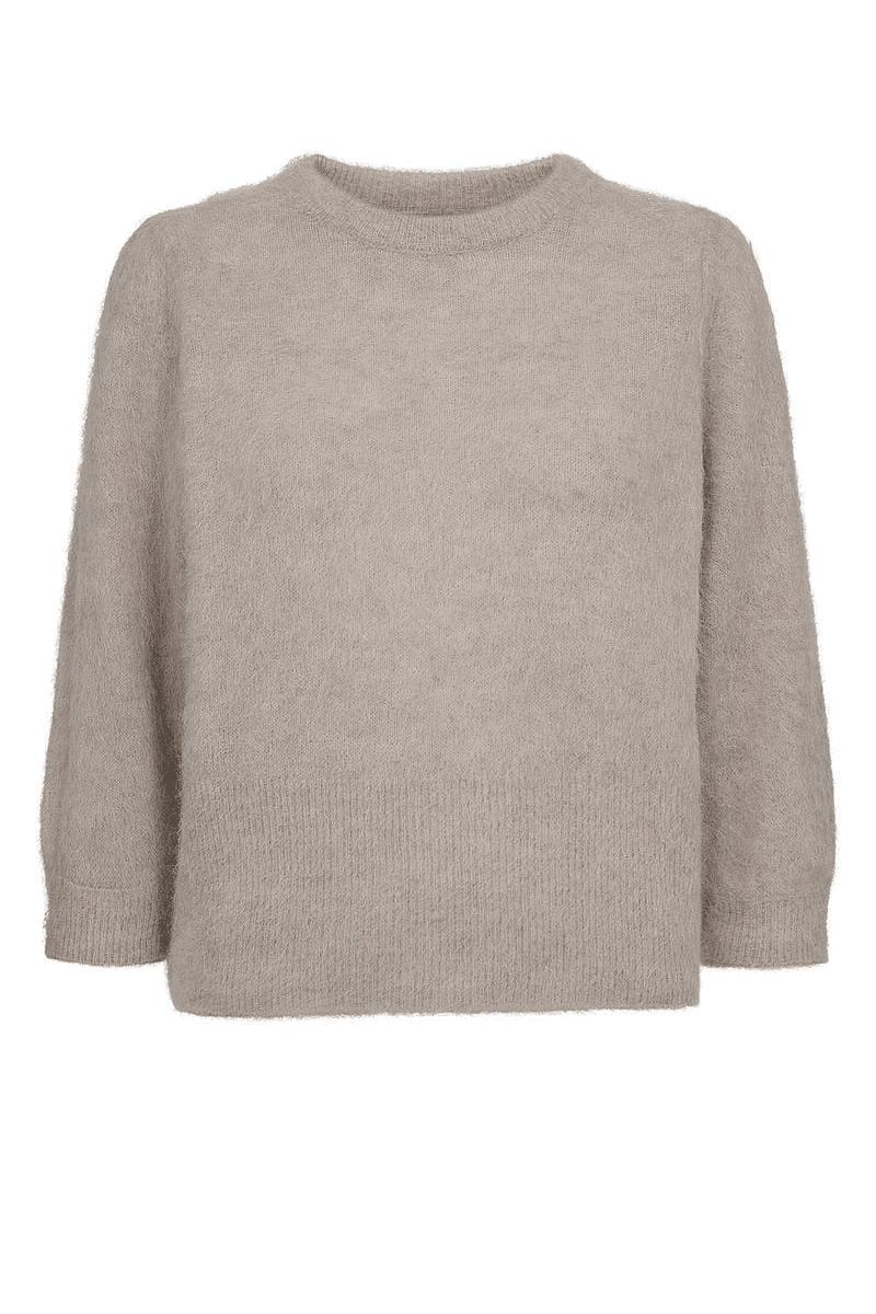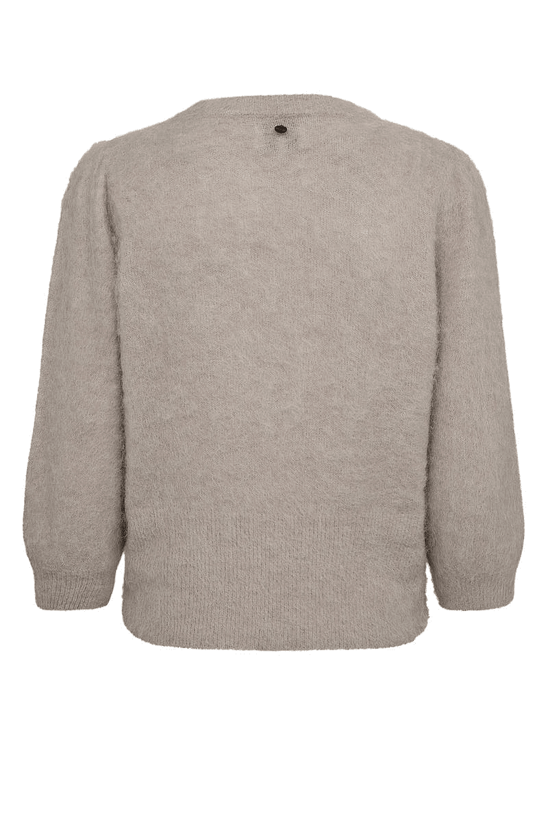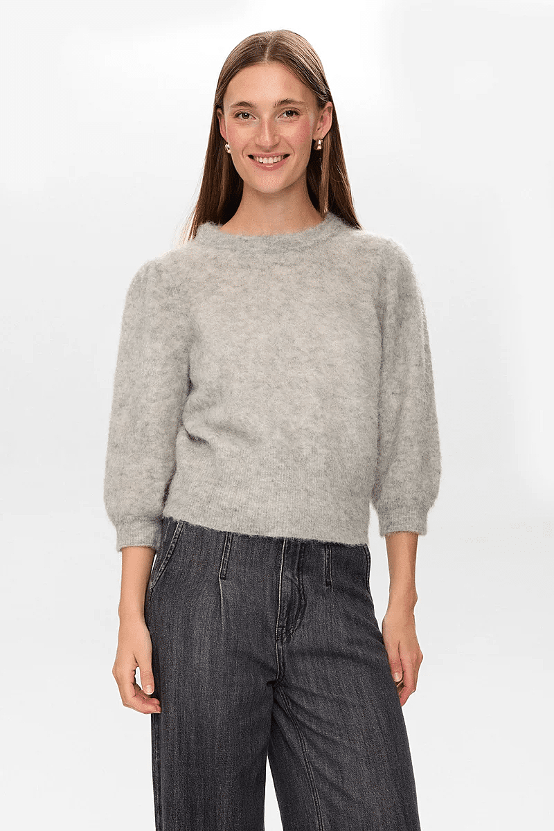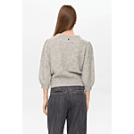 Dit is een truitje met 3/4 mouwen van Nümph. De mouwen hebben een licht pofeffect en de manchetten, hals en zoom zijn afgewerkt met een ribboord