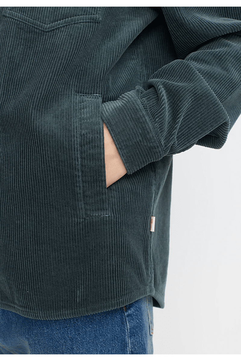 Dit Revolution overshirt met rits is gemaakt van een zware 8-wals biologisch katoenen corduroy-stof, met een zacht en fluweelachtig oppervlak. De sluiting aan de voorkant is ontworpen met een metalen ritssluiting met ritsschuif met het Revolution-logo. Het overhemd is voorzien van twee karakteristieke opgestikte borstzakken, verstelbare manchetten en de onderzoom is licht gebogen. Er is een neklus gemaakt om dit shirt gemakkelijk op te hangen, en voor extra comfort is het shirt voorzien van handverwarmende zijzakken. Het is perfect om tijdens het koude seizoen over een T-shirt of sweatshirt te dragen, of als tussenlaag voor bovenkleding