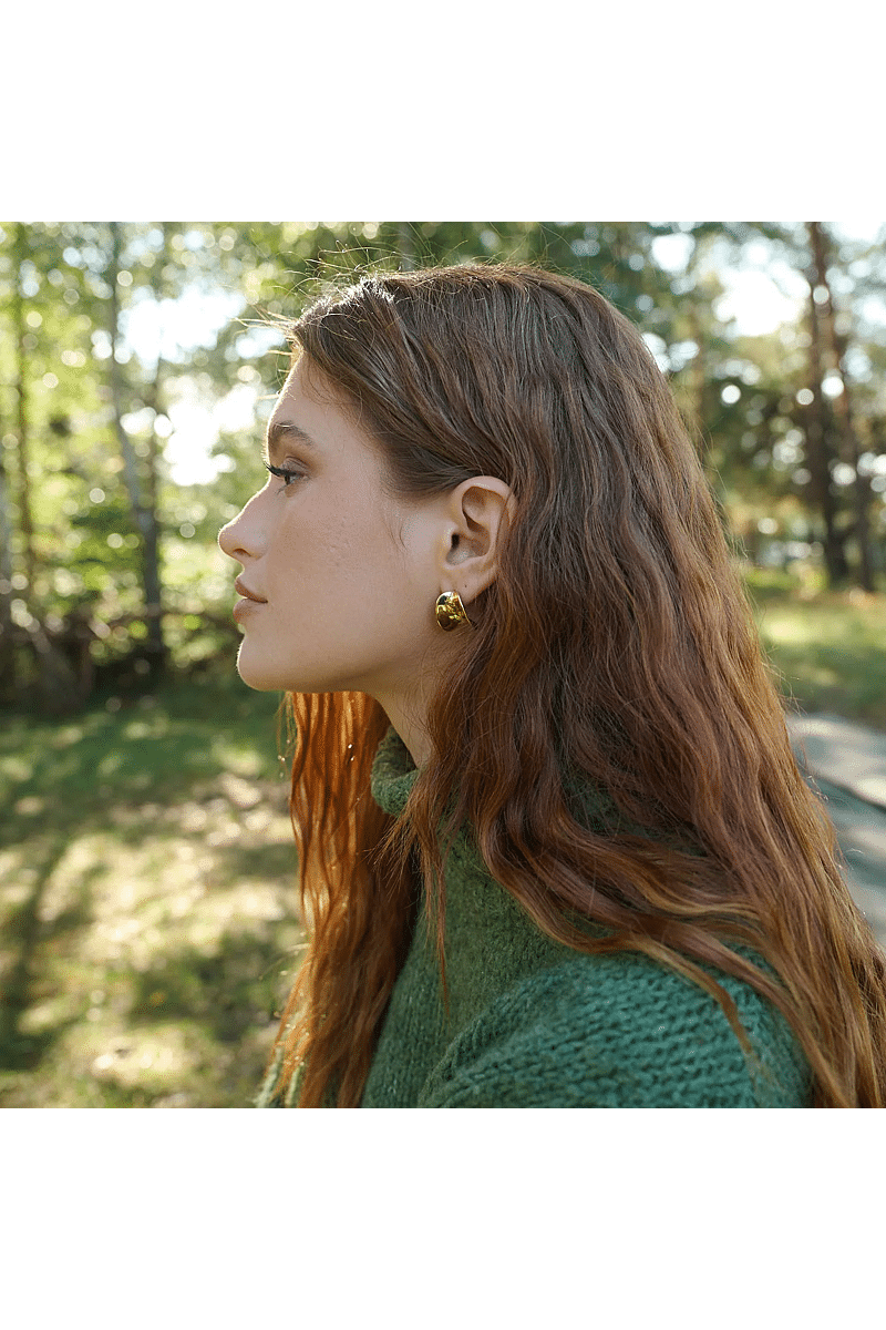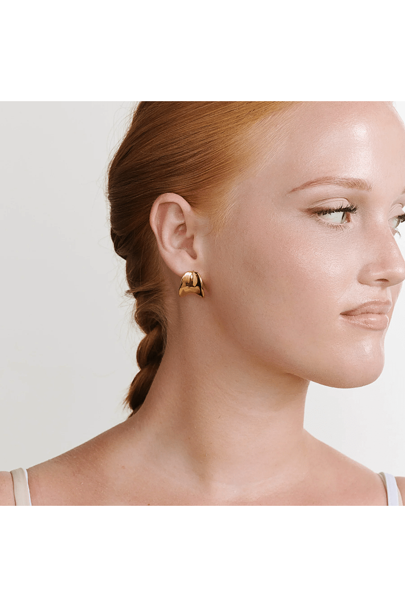 Maak een statement met timi's Piper oorbellen! Deze unieke studs hebben een organisch, gesculpteerd ontwerp met een hoogglans afwerking, die het licht prachtig vangt. Gemaakt van duurzaam, waterbestendig roestvrij staal, zijn ze ontworpen om moeiteloos een vleugje moderne elegantie aan elke look toe te voegen, de hele dag door. Perfect voor wie graag opvalt met een verfijnde flair.