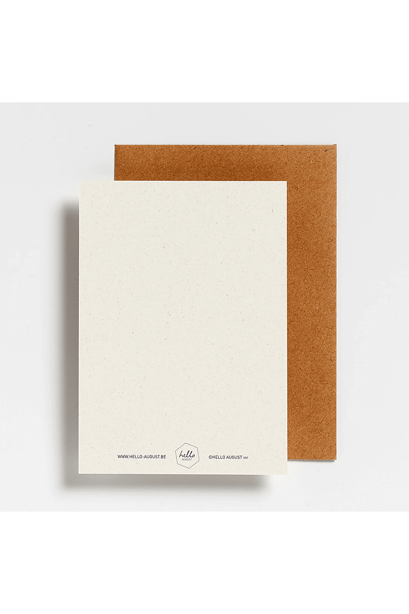 De achterzijde van deze Hello August wenskaart is blanco, dus ideaal om je eigen tekst op te noteren. Inclusief bijpassende gerecycleerde envelop.