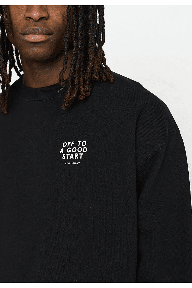 Dit is een losvallend sweatshirt met ronde hals van Revolution met geribbelde randen, gemaakt van een biologisch katoenen sweatstof, met een gewicht van 420 gsm en voelt knapperig aan. Het sweatshirt met ronde hals heeft een kleine Revolution-merkprint op de borst en een grote karakteristieke print middenachter. Het zware gewicht van de sweatstof zorgt voor een stabiel en duurzaam kledingstuk
