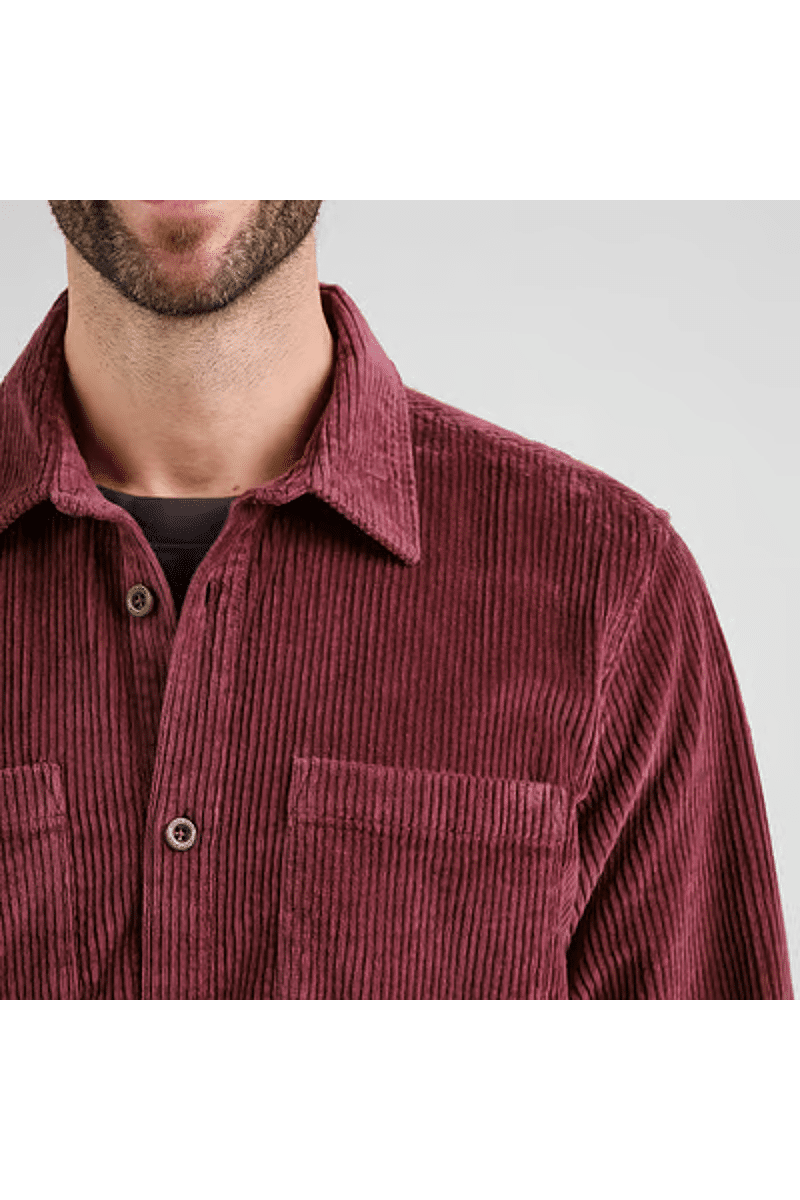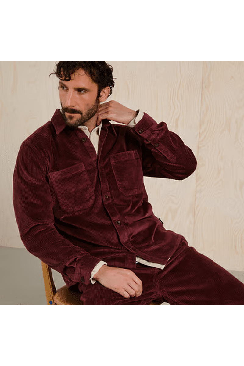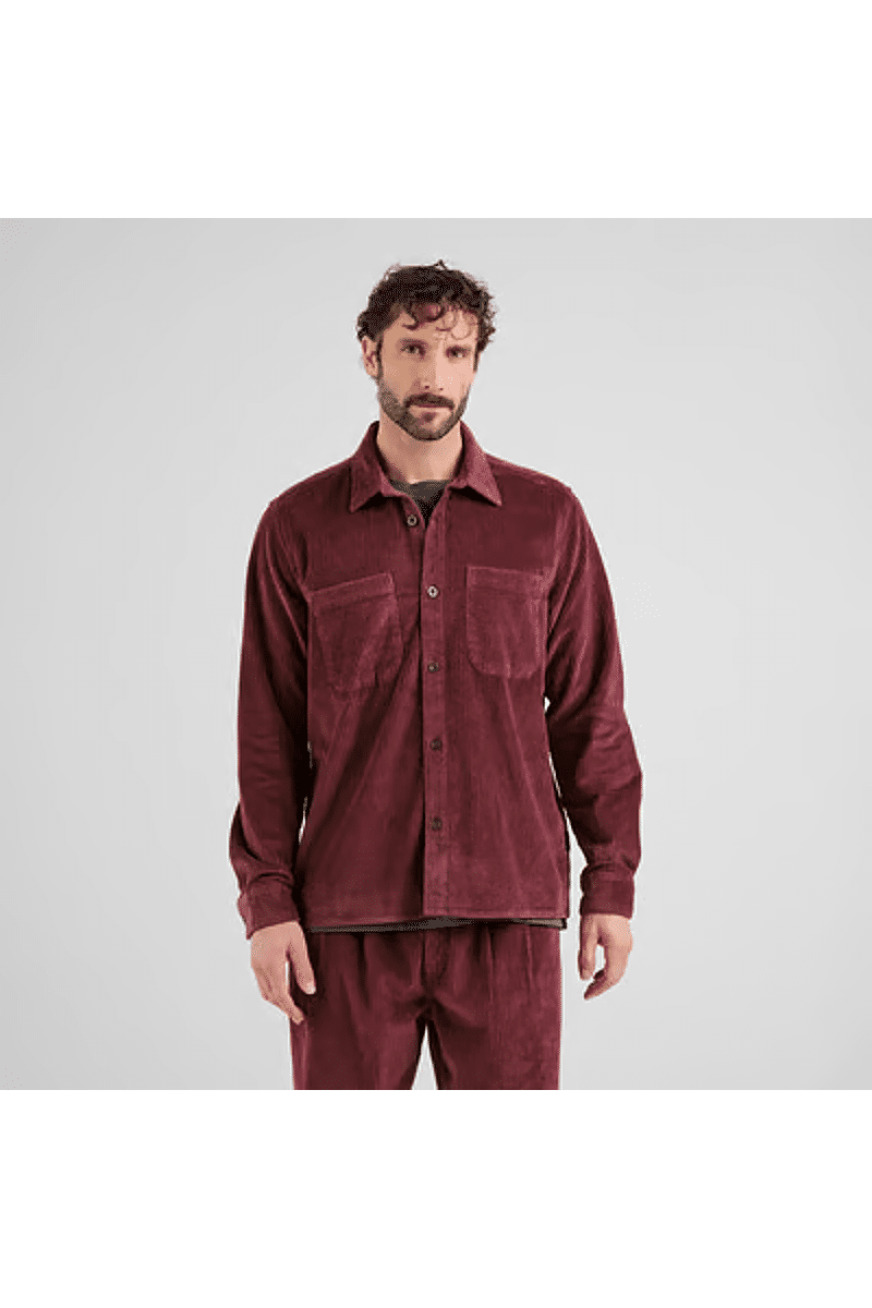Dit is een relaxed overshirt van biologisch katoenen corduroy van Dedicated. Normale overhemdkraag, twee borstzakken. Rechte onderkant.