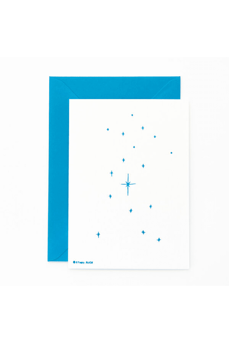Dit is een boekdrukkaart van Studio Flash. Het is ontworpen aan hun keukentafel en trots gedrukt in hun garage. Met liefde uit België.