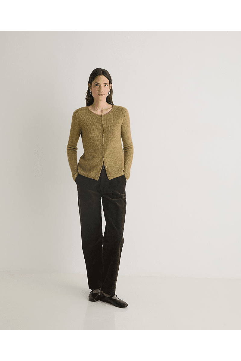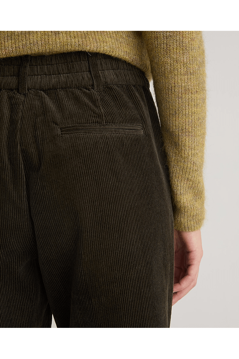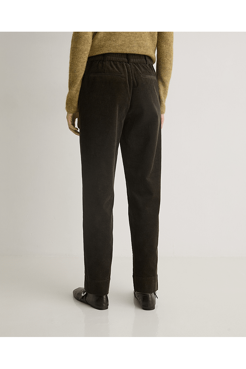Dit is een corduroy broek van Yerse. Gemaakt van 100% katoen. Normale pasvorm. Rits- en knoopsluiting. Elastiek in de taille aan de achterkant. Riemlussen in de taille. Twee zijzakken en 2 paspelzakken achter.