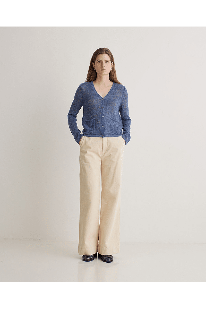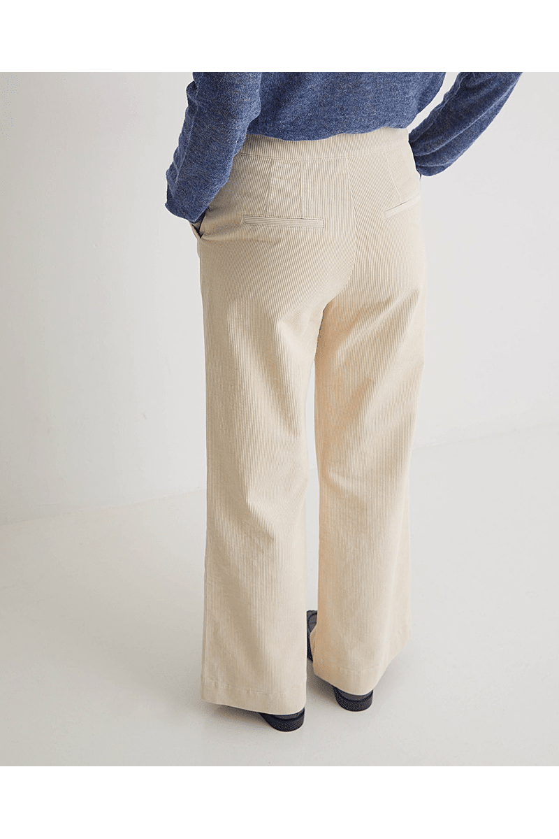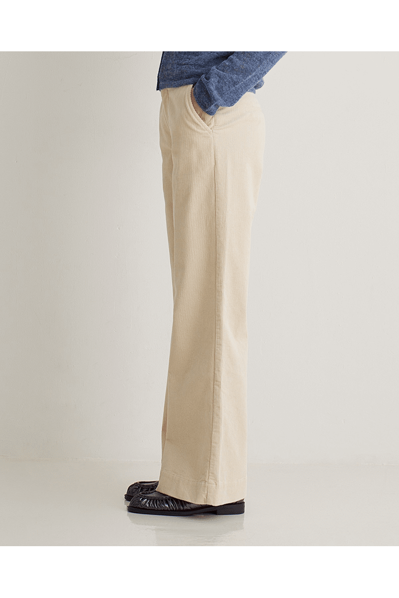 Deze corduroy broek van Yerse is gemaakt van 100% katoen. Uitlopende pijpen. Rits-, haak- en knoopsluiting. Twee steekzakken. / Het model is 175 cm lang en draagt maat S.
