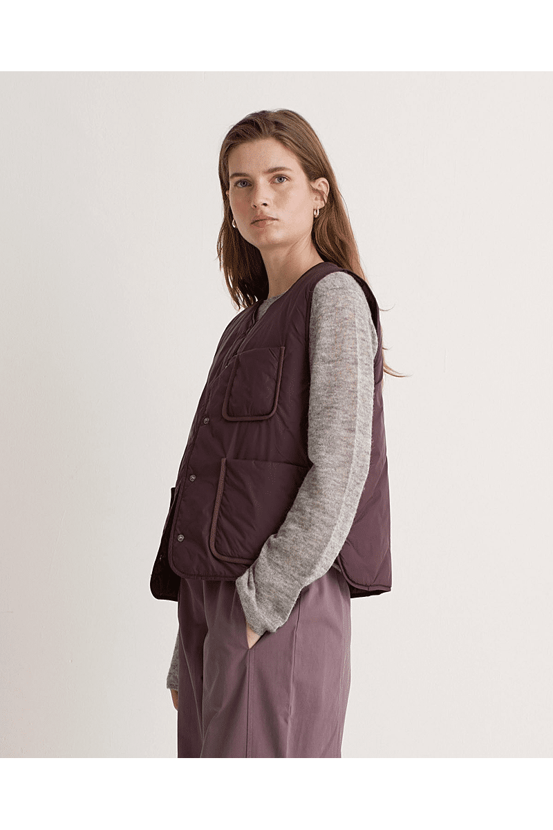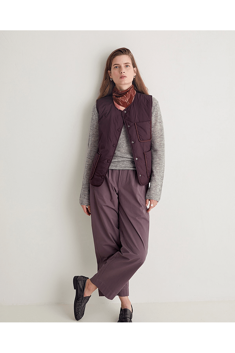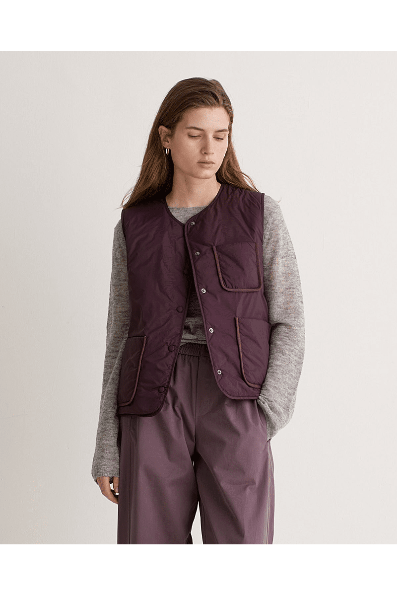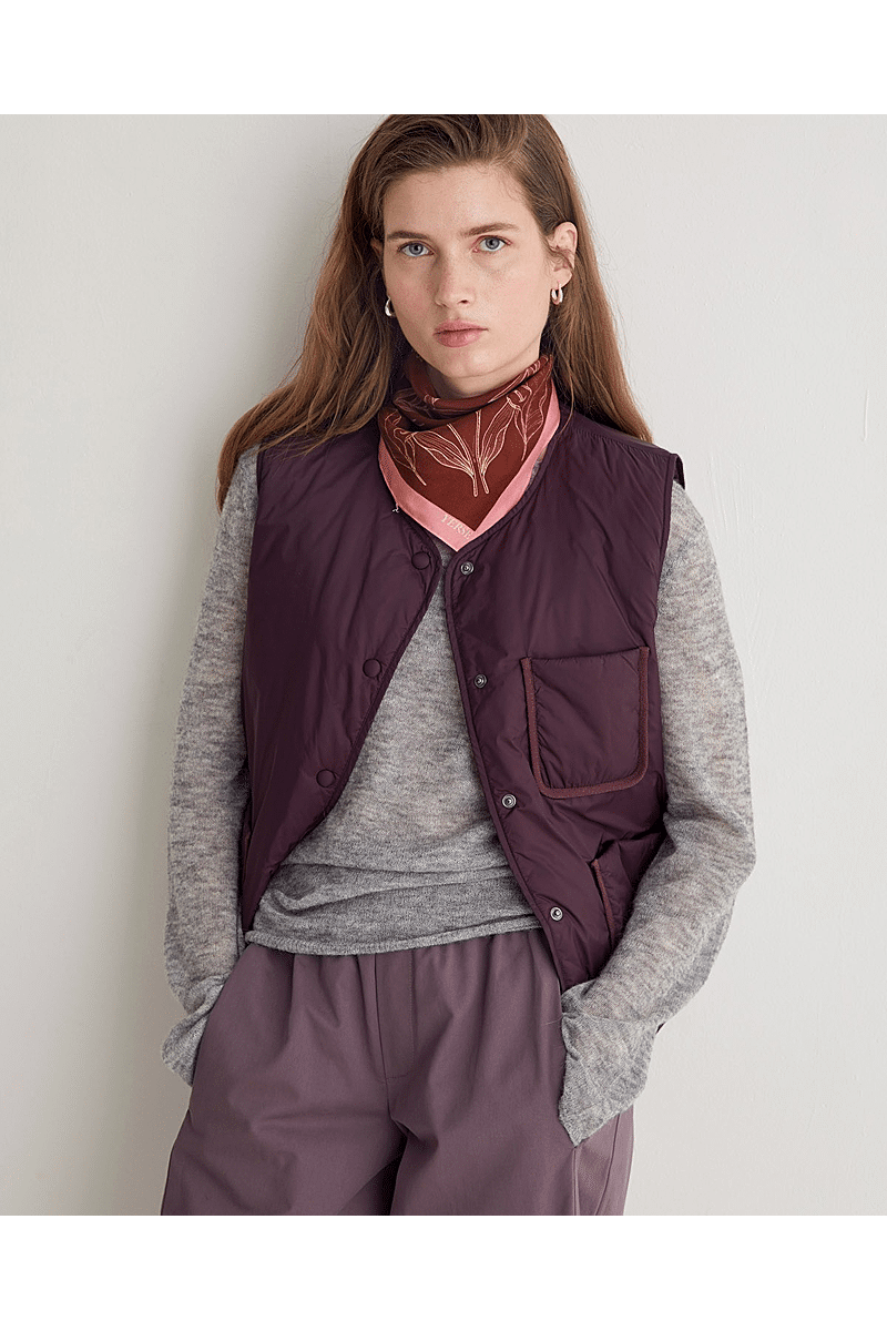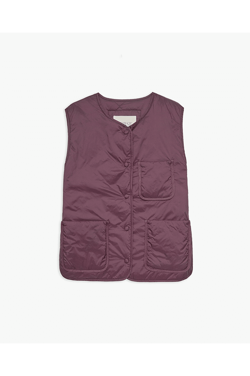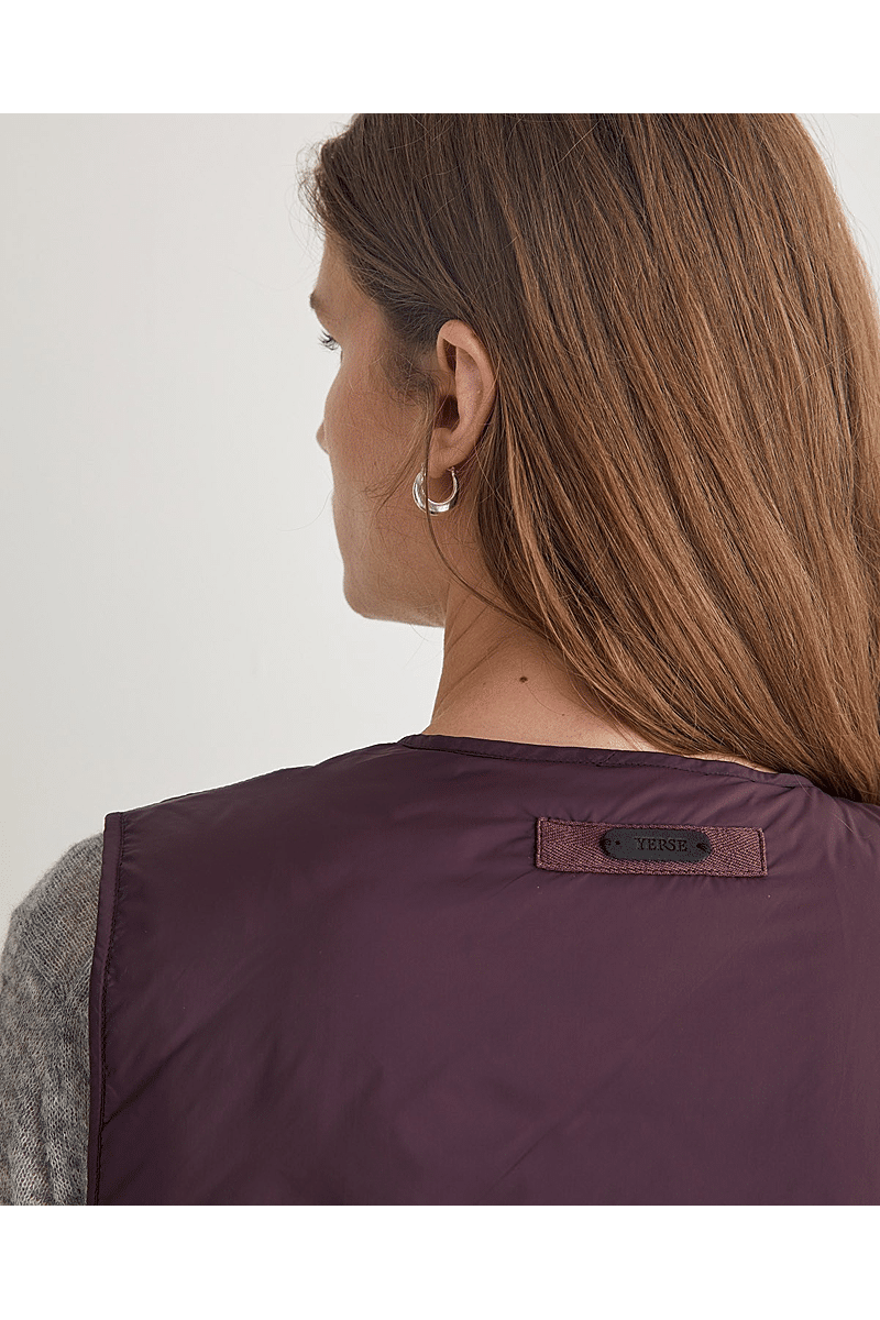 Dit is een waterafstotend vest van Yerse. Gerecycleerde vezels. Normale pasvorm. Ronde halslijn. Mouwloos. Drukknoopsluiting. Zijsplitten aan de zoom. 3 opgestikte zakken aan de voorkant met bies en 1 binnenzak met klittenbandsluiting. / Het model is 175 cm lang en draagt maat S